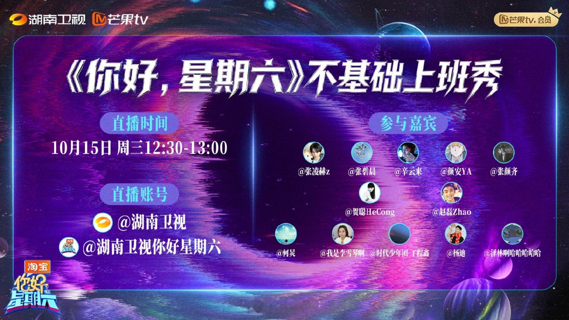 好六不基础上班秀 上班即秀场!张碧晨、颜安的穿搭自带镜头感,贺聪、赵磊特约登场放大招,直播精彩根本停不下来。何炅、泽林邀你一起围观高光时刻~ 你好星期六