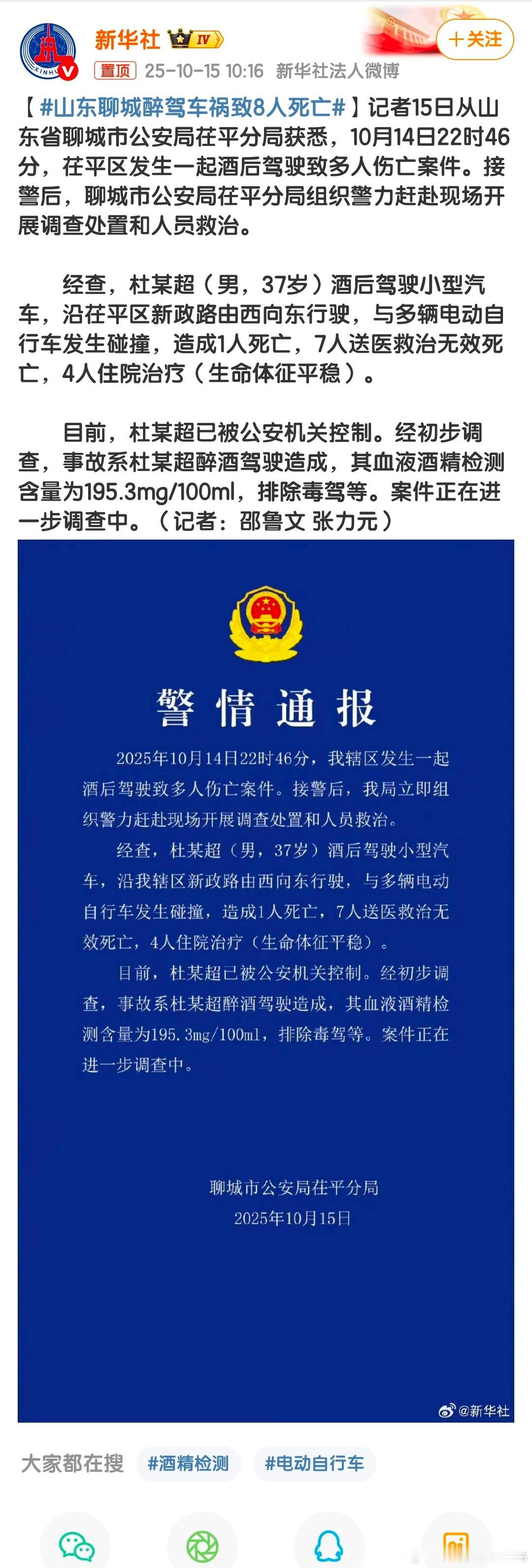 山东聊城醉驾车祸致8人死亡酒驾害人害己,守法文明出行才是对家庭和社会最大的负责![good][good][good]