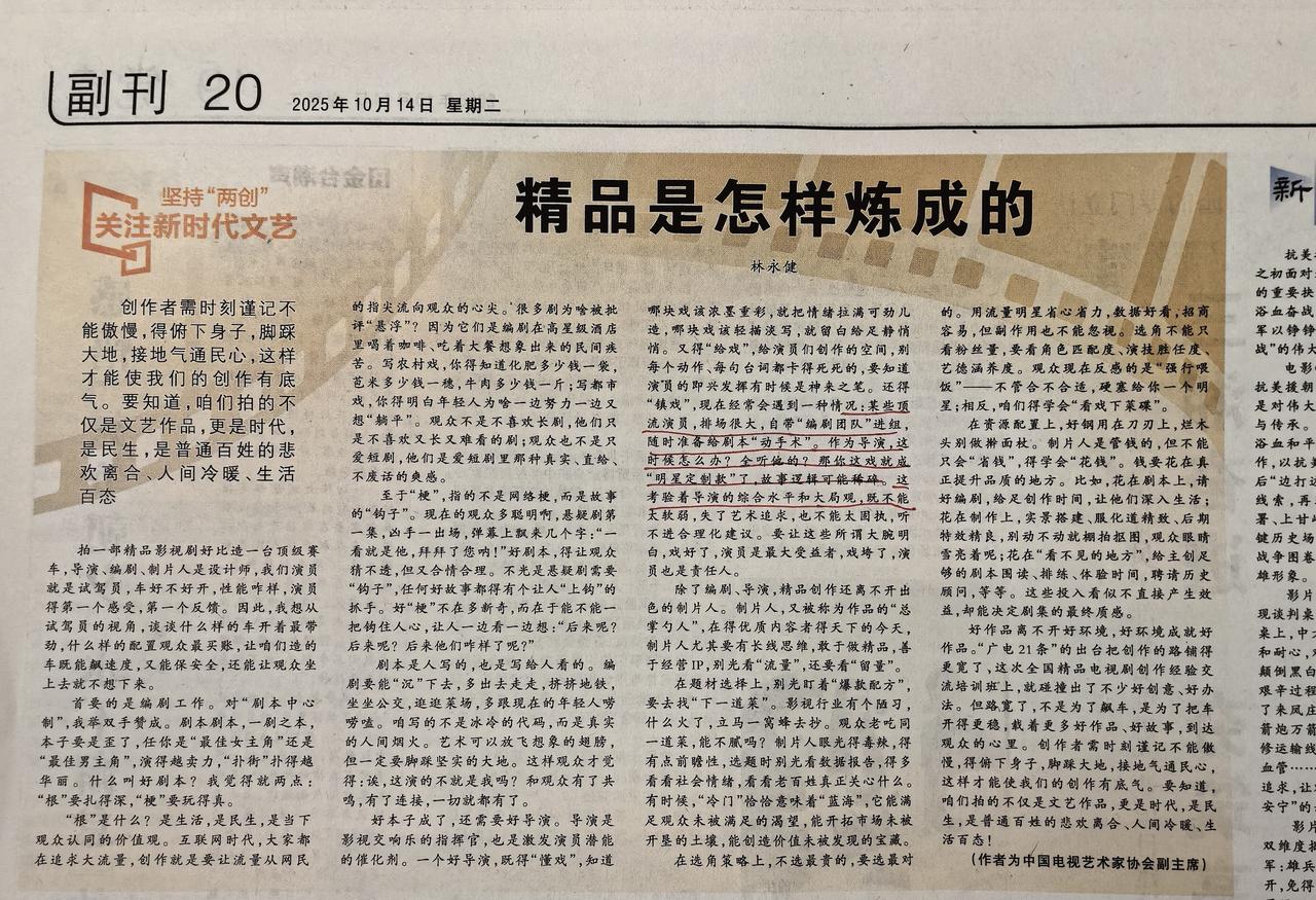 老戏骨林永健人日发文批某顶流演员排场大,进组自带私人编剧团队,随时对剧本进行修改