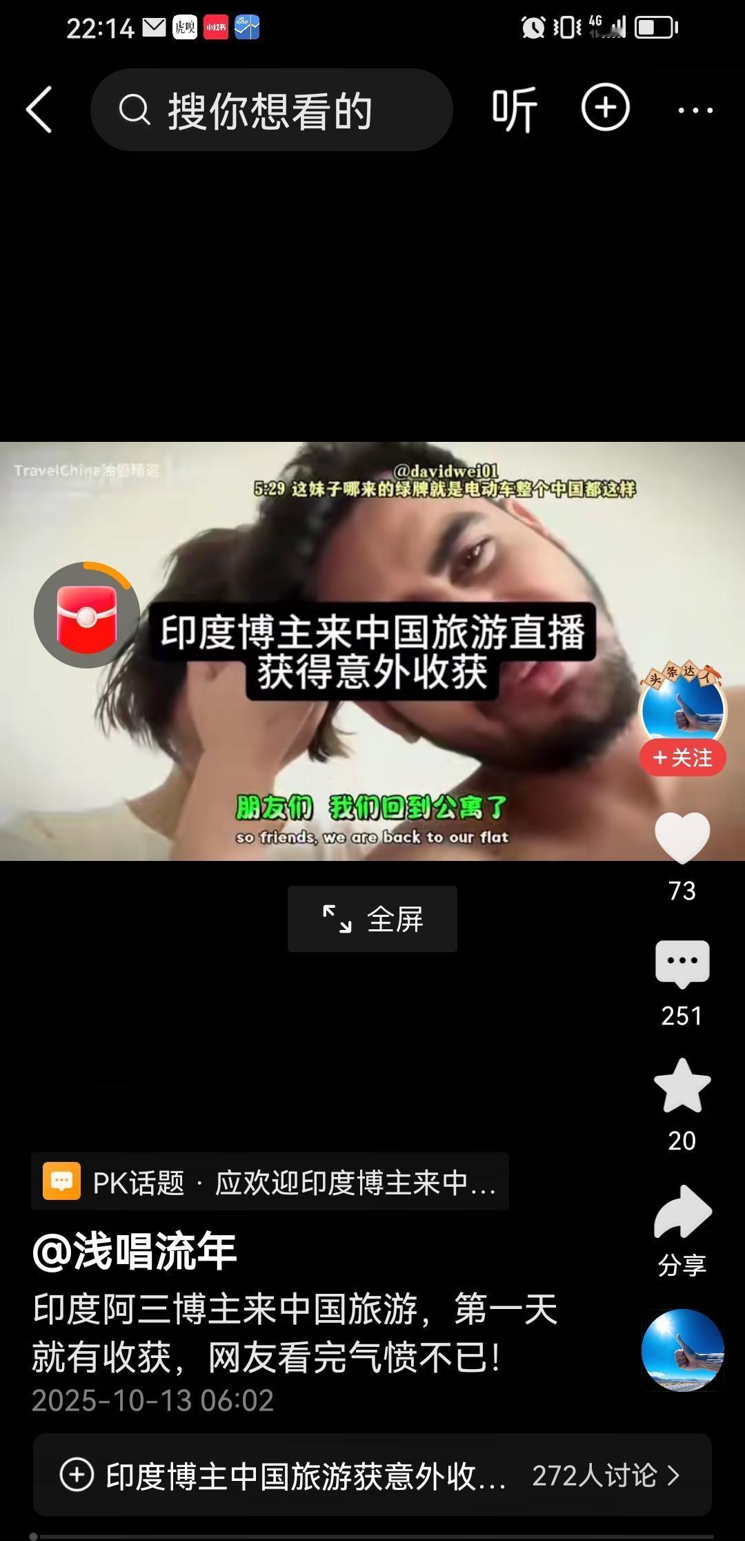 最近有个印度博主在视频里显摆,说来自个儿在中国旅游特别受欢迎,还有中国姑娘主动倒贴。这事在网上引起不少人讨论。这种自我吹嘘听起来就挺离谱的。 我自己看了一圈发现,这博主晒出来的所谓“艳遇”,其实也就那么回事。按咱们这边的眼光,真谈不上多出众。放人堆里都未必能认出来。可到了那位博主嘴里,倒成了什么不得了的事。有些人可能觉得国外来的就新鲜,甚至还有人上赶着凑上去,这心态也是没谁了。 其实这类事也不是头一回见了。哪儿都有这种人,觉得外来的和尚好念经。但真没必要把自己放得太低。咱就说,感情也好交往也罢,平等尊重才是关键,哪能因为对方是个外国人就自动加分?再说了,现在都什么年代了,还拿这种老套剧本说事儿,真有点过时。 这类炒作看看就算了,没必要太当真。关键还是得有自己的判断,别被带偏了节奏。 素材来自网络,侵权联系删除
