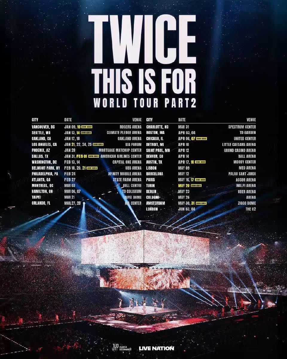 Twice六巡加场 Twice十周年巡演加场 这预计动员将成为KPOP历史上北美最大规模巡演