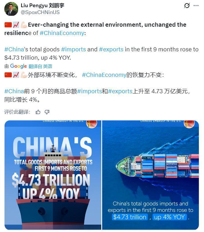 中国驻美国大使馆发言人刘鹏宇:外部环境不断变化,中国经济的恢复力不变。