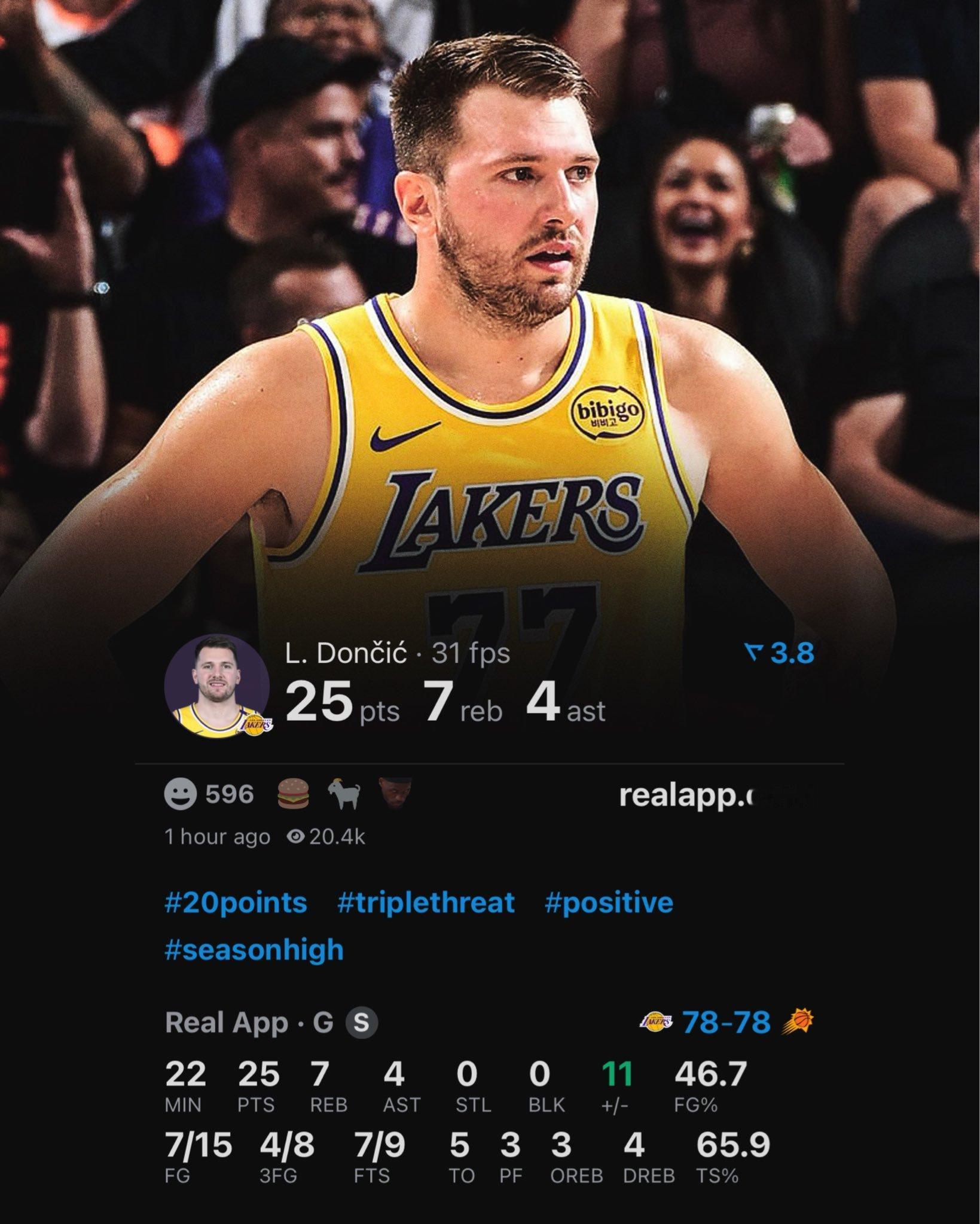 里夫斯25分、东契奇25分,布朗尼7分,湖人下半场被太阳逆转。