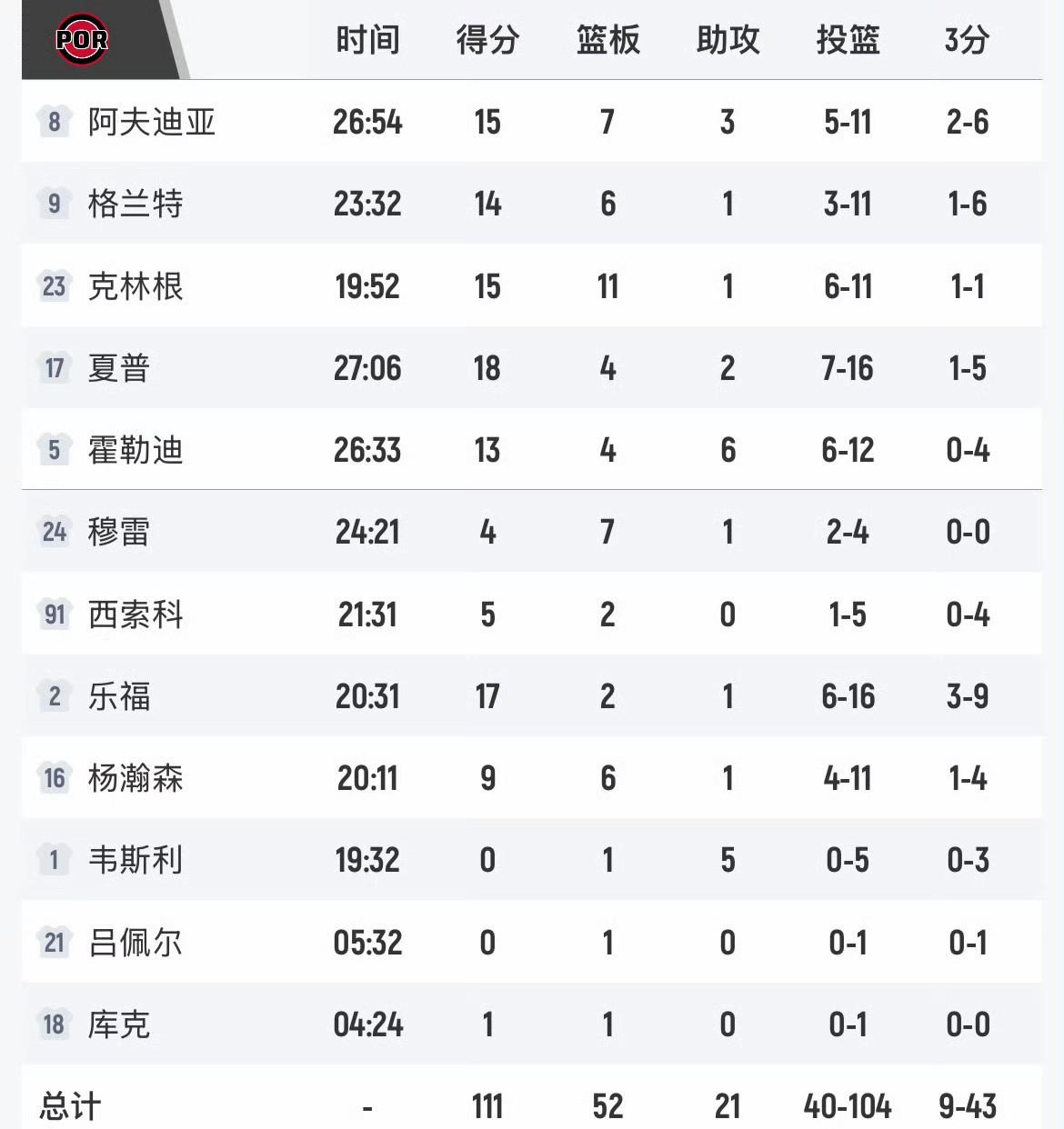 118-111!勇士季前赛双杀开拓者,库里还是那个熟悉的库里,13次罚球,联盟第一人,26分钟高效拿下28分。 杨瀚森出战20分钟,得到9分6篮板1助攻1盖帽。进入状态明显快多了,在场上无论是掩护、投篮、卡位更加游刃有余。
