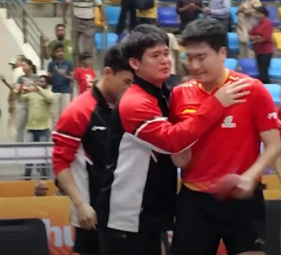 都别忘了这个在第三盘为国乒男队握紧最后一根救命稻草,战胜蓧冢大登帮中国队开启绝地反击转折的林诗栋呀! 自己的比赛结束后,一直站着为后面王楚钦、梁靖崑的比赛加油呐喊! 梁靖崑拿下最后一盘比赛,中国队赢了,林诗栋也看起来激动的要哭了! 要我说,国乒男团亚锦赛半决赛王楚钦、梁靖崑、林诗栋都完成了真正的自我救赎与升华! 林诗栋叫“逢山开道” 王楚钦叫“遇水搭桥” 梁靖崑叫“绝地反击” 无敌三剑客,他们赢得绝不是一场比赛那么简单,赢的是全国人民揪心后的“放心”,赢的是日本队不愿承认却又不得不服的“死心”,赢的是印度阿三暗陷中国队却没能得逞的“灰心”! 小石头的确是要加鸡腿的,自己保住了自己那分,在头哥比赛的时候呐喊助威,给头哥鼓舞士气,喊得比张本好大声,这不气势就来了。 大家觉得呢?