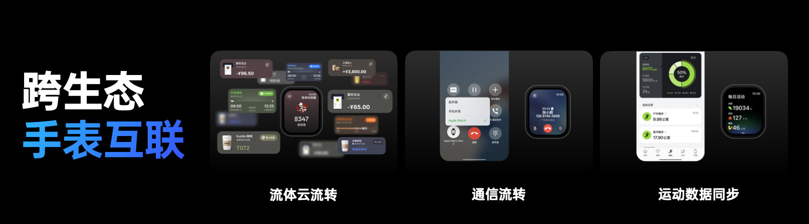 coloros16 全面打通了Apple Watch的生态,让OPPO的流体云,也能无缝的在Apple Watch上显示,打车、外卖、取餐码、航班高铁信息全面登陆Apple Watch。此外,手机备忘录数据迁移,跨屏互联的手机镜像投屏、通知流转以及众多AI能力都全面支持。oppo开发者大会全新coloros16发布