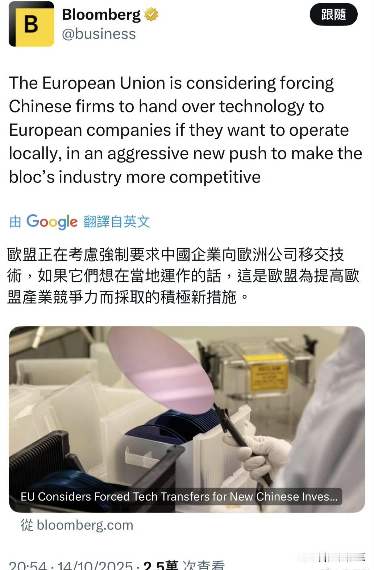 要求中国强制转移技术,美媒曝出惊人消息!10月15日,根据美国彭博社报道,美媒称
