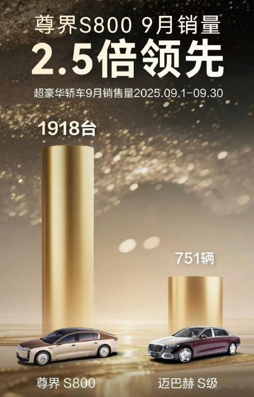 中国超豪华车金九交付量断层领先中国品牌霸榜金九豪车市场尊界S800