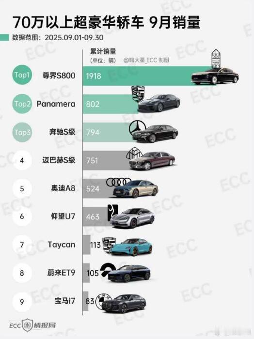 9月份,尊界S800销量达到了1918台,比奔驰S级、奥迪A8、宝马7系、保时捷Panamera的数量都要多,这已经足够能说明问题了。今天的中国豪华车市场,再也不是德系品牌一家独大的时候了,尊界、问界、享界等等已经瓜分了很多份额。