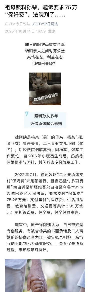 祖母照料孙辈,起诉要求75万“保姆费”,法院判了……