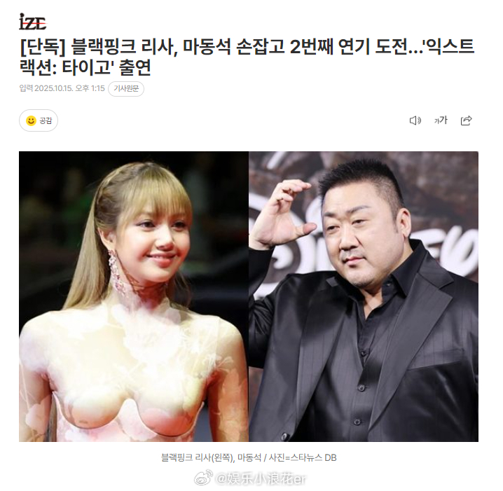 Lisa马东锡合作电影 据韩媒,LISA将与马东锡携手出演电影《惊天营救:Taigo》,你期待吗?