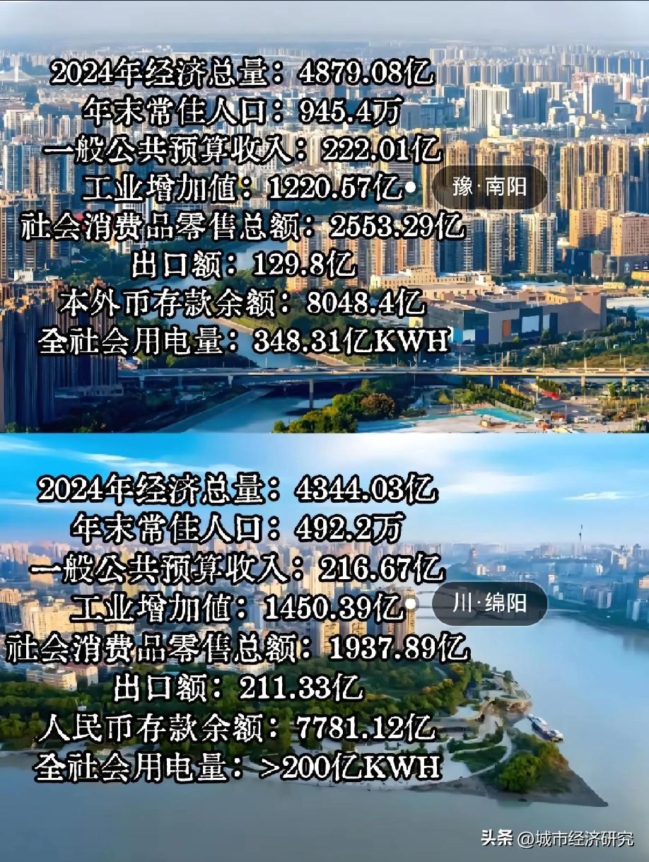 四川绵阳与河南南阳各方面数据对比情况,从图片数据对比可以看出绵阳与南阳这两座城市