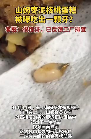 山姆连环爆雷!山姆超市核桃蛋糕里竟然,吃出带金属的“假牙”! 还有网友刚买的排骨恶臭熏天,就连配送员都被货物压得看不见路!260元会员费,花得全是糟心事!一向注重品控的山姆如今却是连环塌房?山姆这是彻底不管不顾了吗?我们一起来看。 据澎湃新闻等媒体报道,10月14日,上海网友曝光在山姆外高桥店买的枣泥核桃蛋糕中,竟藏着一颗形似松子仁、一端带着螺纹金属的牙齿状异物。而就在几天前,上海老会员王先生在线上购买的猪肋排,拆开瞬间就被一股恶臭熏到,山姆虽承认肉品有问题,却只愿赔偿300元代金券,拒不履行“退一赔十”的法定要求。 更让人揪心的是,同样在10月14日,有市民拍到山姆配送员骑电动车送货时,车上挂满几十甚至上百斤货物,堆得比人还高,连后视镜都被完全遮挡,在车流中穿梭,安全隐患十足。 而最让人愤怒的是山姆的“甩锅式回应”!蛋糕吃出异物,客服一边假意惊讶,一边嘴硬“正常商品可放心食用”,转头就把责任推给工厂,让工厂进行核实排查”。 排骨发臭呢,明明是自己理亏,却用代金券打发消费者,无视食品安全法的明确规定。对于配送员超载送货存在的安全隐患,官方只是轻飘飘的一句“配送由第三方负责”,把责任推得一干二净,毫无担当。 对于这些问题,网友们纷纷吐槽:“花260元办会员,本来图的是安心,现在买蛋糕要先挑假牙,买肉要先闻臭味,连收个货都替配送员捏把汗,这会员费交得太冤了!” 还有人揭露:“之前就买到过生虫的坚果,山姆的品控早就形同虚设了,眼里只有销量,哪管消费者和配送员的安全!”更有懂法的网友直言:“食品安全问题退一赔十是法律规定,不足千元按千元算,山姆给300元代金券就是耍无赖,根本不把法规放在眼里!” 要知道山姆一直标榜自己“品控严格、服务高端”。设置会员制,核心就是为了让客户“花钱买安心、买服务”,而不是买“心惊胆战”的!而而如今的蛋糕藏有异物、排骨发臭、配送员冒死送货!可见山姆的会员卡早已不名副其实。 听一句劝,别再靠“高端人设”糊弄消费者,食品安全和人员安全是底线中的底线,守不住这条线,再大的品牌也终将被市场和消费者抛弃!大家说呢。