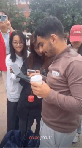 一群女大学生争先恐后的拿出手机,主动的亮出二维码让一名老外加好友。 从她们的脸上