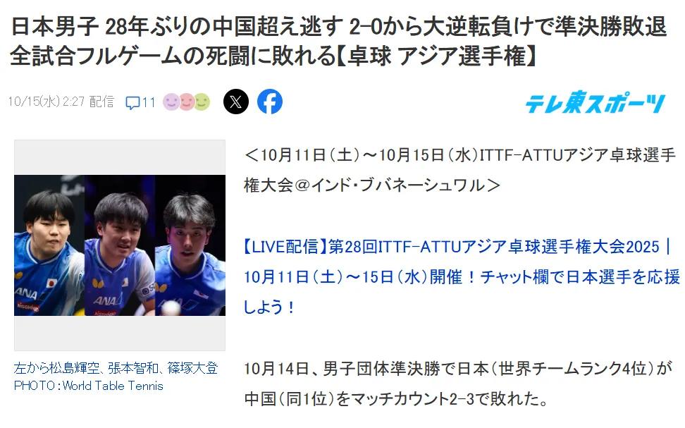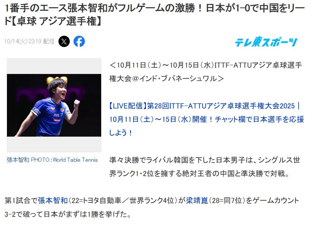 印度亚锦赛团体赛,昨天晚上张本智和3一2赢了梁靖崑一盘 日本媒体就表扬张本智和,