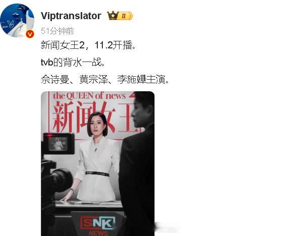 新闻女王2定档 网传《新闻女王2》11月2日开播,想看!