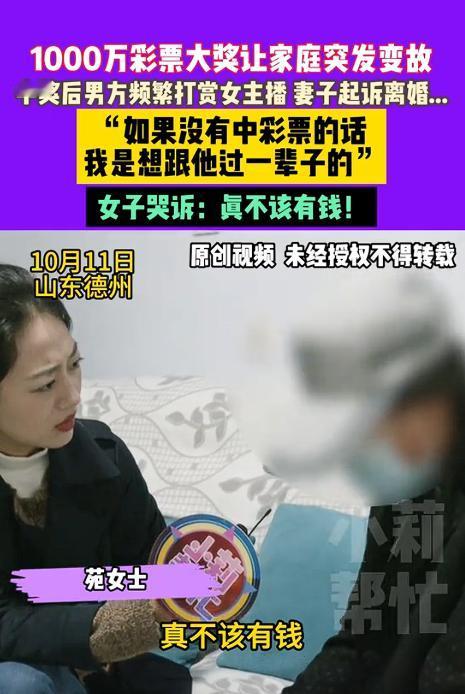 “真不该有钱”!10月13日报道,山东德州,一男子花42元买彩票,竟然中了1000万,税后得了814万,他中奖第3天,就把现金取走了,然后给了老婆一张卡,说里面存了300万,用于2人养老,妻子信以为真,可她发现男子从此就飘了,天天出去打牌,整夜刷美女,给不同的女主播打赏了120万,却一分都不舍得给妻子花,妻子去银行一查,才发现男子给的卡里,压根没有300万,余额为0,妻子大怒离婚,要求男子必须把814万分她一半。妻子哭诉:真不该有钱,如果没中彩票的话,我是想跟他过一辈子的。 [礼物] 2024年12月,山东德州的苑女士丈夫花42元买彩票,中了1017万元大奖,扣税后到手814万元,中奖三天后,丈夫取走710万元,只给苑女士一张银行卡,说里面有300万元养老用。 苑女士当时没有核实卡内余额,随后几个月,丈夫行为开始变化,他每晚看直播到深夜,给多位女主播打赏超过120万元。 邻居看到他和某位女主播一起外出过四天,苑女士几次询问家庭开销的钱从哪来,丈夫总是敷衍几句就不再回应。 2025年10月,苑女士需要用那笔养老钱时,发现银行卡余额为零,她这才明白丈夫当初的承诺落了空,随即向法院提起离婚诉讼并要求分割财产。 从法律层面看,婚姻关系存续期间获得的彩票奖金属于夫妻共同财产,根据《民法典》第1062条,工资、经营收益、知识产权收益等在婚后取得的都归夫妻共同所有,彩票奖金同样适用这一规定。 夫妻对共同财产有平等的处理权,如果一方未经协商擅自处置大额共同财产,在离婚财产分割时,根据《民法典》第1092条,可以判决其少分或不分,苑女士丈夫打赏主播的120万元,属于未经配偶同意处置共同财产的行为。 浙江温州曾有类似案例,一名男子中奖千万后,将大部分奖金转给亲属和前妻,离婚时法院认定他转移夫妻共同财产,判令向妻子支付财产总额的60%作为补偿,这个判例为苑女士的案件提供了参考依据。 对于打赏主播的120万元,苑女士可以尝试追回,如果能证明接收方明知这笔钱来自他人夫妻共同财产,且打赏金额明显超出正常社交范围,可以主张该赠与行为无效,不过实际追回难度较大,需要充分的证据支持。 苑女士丈夫面对质询时回应“钱我花了,等开庭再说”,这种态度在司法实践中可能对他不利,法院会综合考虑隐瞒财产、转移财产的情节来判决。 关注家庭生活的网友们发表了自己的看法: “这男的真是把男人´有钱就变坏′,演得明明白白啊!中奖第三天就偷偷取走710万,给老婆一张空卡说是300万养老钱,这操作也太算计了”。 “之前买菜都要砍价的人,现在给女主播打赏120万眼睛都不眨,还带人家出去玩四天,真是中了奖就忘了自己姓什么了”。 “婚内中的奖,就是夫妻共同财产,他这么偷偷转移、大肆挥霍,离婚分割财产时完全可能少分甚至不分,之前就有类似案例,一方恶意转移财产,最后法院判决其少分财产”。 “给女主播的那120万打赏,如果能证明是违背公序良俗或者严重损害了夫妻共同财产利益,妻子是有机会追回的”。 “有律师说如果打赏行为基于不正当男女关系或严重损害夫妻共同财产利益,妻子可以主张部分返还”。 “他大手笔打赏的女主播好像根本看不上他,报道里说那位主播还嫌弃他年纪大,他这真是典型的′人财两空′,预定了,最后众叛亲离也是自己作的,原本好好的一个家,就被这笔横财和他的欲望给毁了”。 “天降横财有时候考验的不是运气,而是人性,夫妻之间信任和忠诚远比金钱重要,在婚姻关系存续期间,夫妻对共同财产有平等的处理权,任何一方都不得擅自隐瞒或挥霍”。 如果你们突然中了1000万,会怎么安排这笔钱才能保证家庭和睦?是放一起共同管理,还是各自留点私房钱? 信源:小莉帮忙