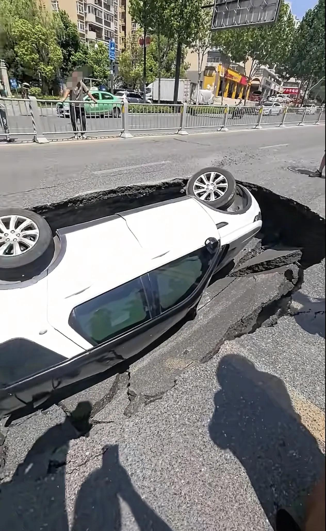 8月25日,安徽合肥一车主驾车正常行驶过程中,偶遇路面突然塌陷导致连人带车翻入坑