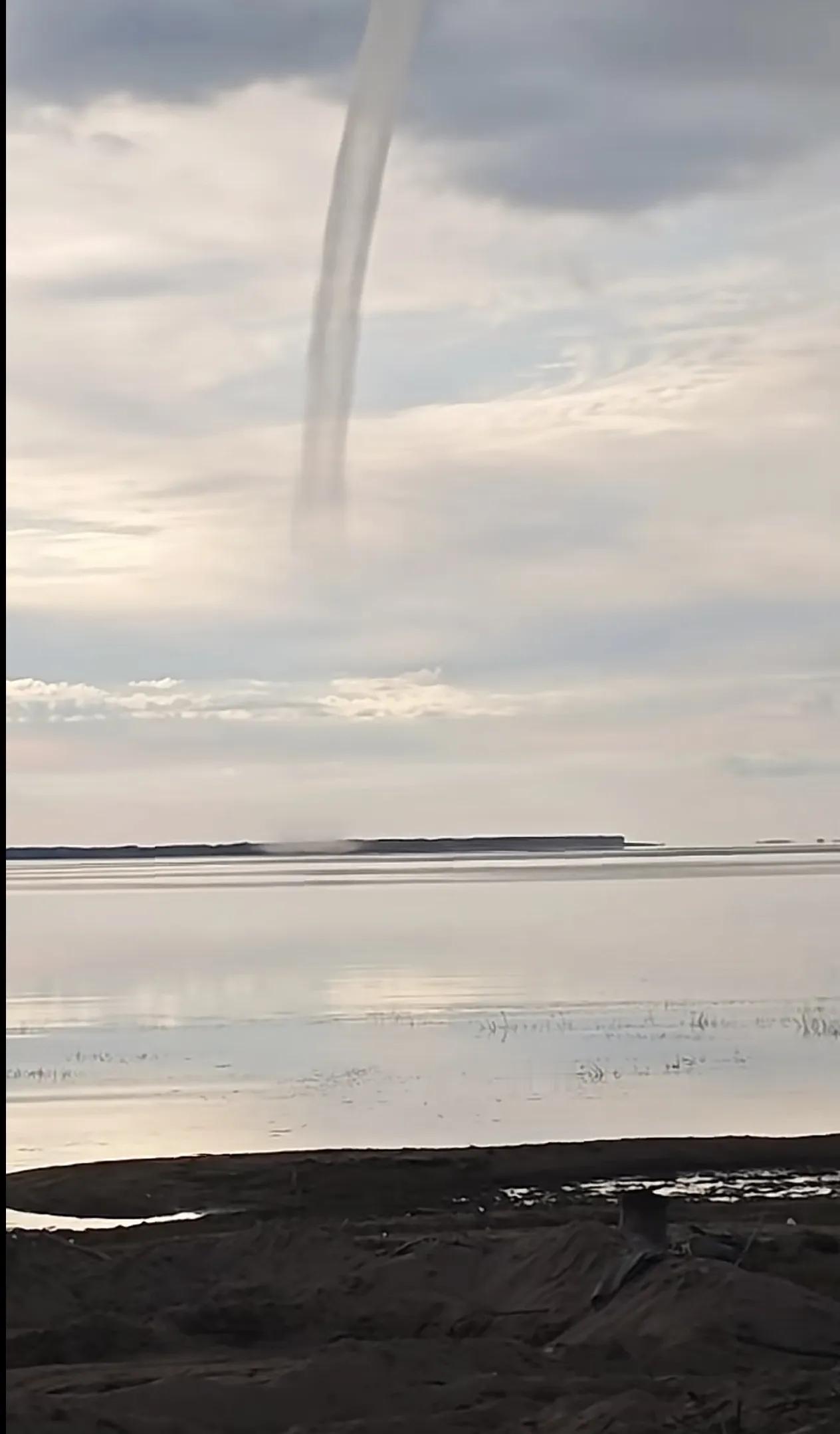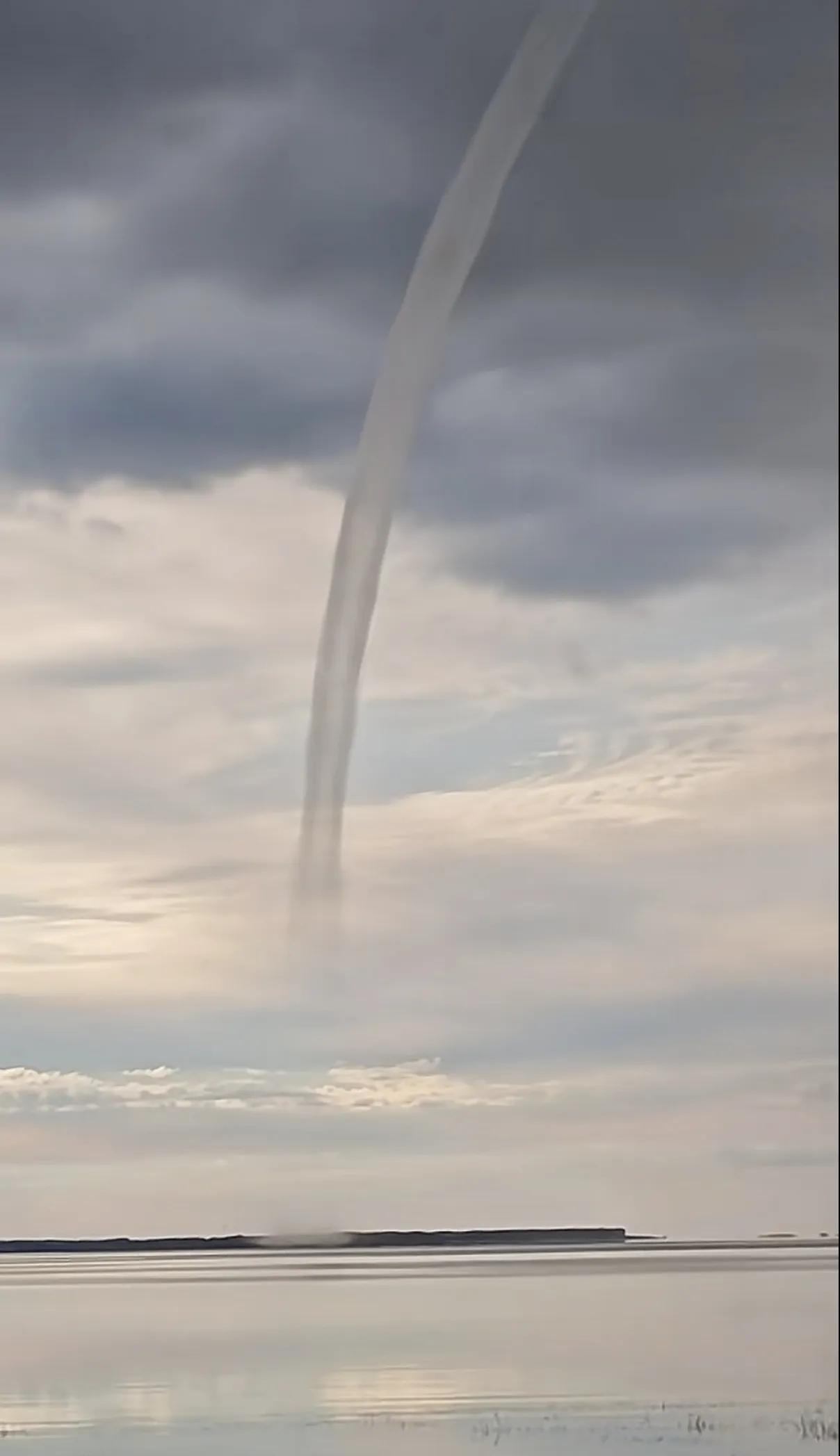 8月27日,黑龙江省大庆市,杜尔伯特县敖林乡四家子村,村民用手机拍摄到了屯子连环湖湖面上的龙吸水奇观。