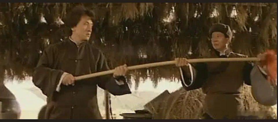 翁靜晶表示,戲中一場劉家良手持長棍在火車底與成龍打鬥的戲份是關鍵。當時所有人都認為火車底空間狹窄,揮舞長棍幾乎「不可行」,但劉師傅堅持「我做到」。結果該場打鬥戲拍得「非常出色」,被劉家良本人視為經典之作,認為絕對具備奪獎潛力。這場經典打鬥戲完成後,電影的導演名單突然「多咗個導演」,成龍的名字被加上,令劉家良由唯一的導演變成雙導演。翁靜晶說:「我唔知佢拍咗啲乜嘢啦,佢都有拍過嘢嘅,但唔係乜嘢咁經典,經典嘅係劉師傅拍!咁見到嘞,即係攞彩就有囉!」