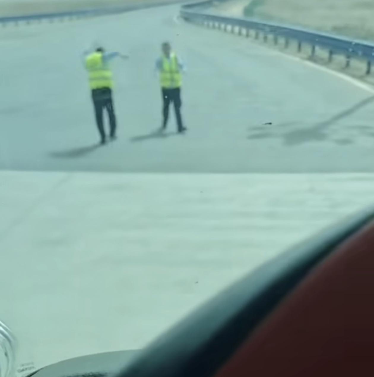 高速公路收费站两名检查员被蜜蜂蛰的四处逃窜,司机在驾驶室内笑得花枝乱颤。 蜜蜂是