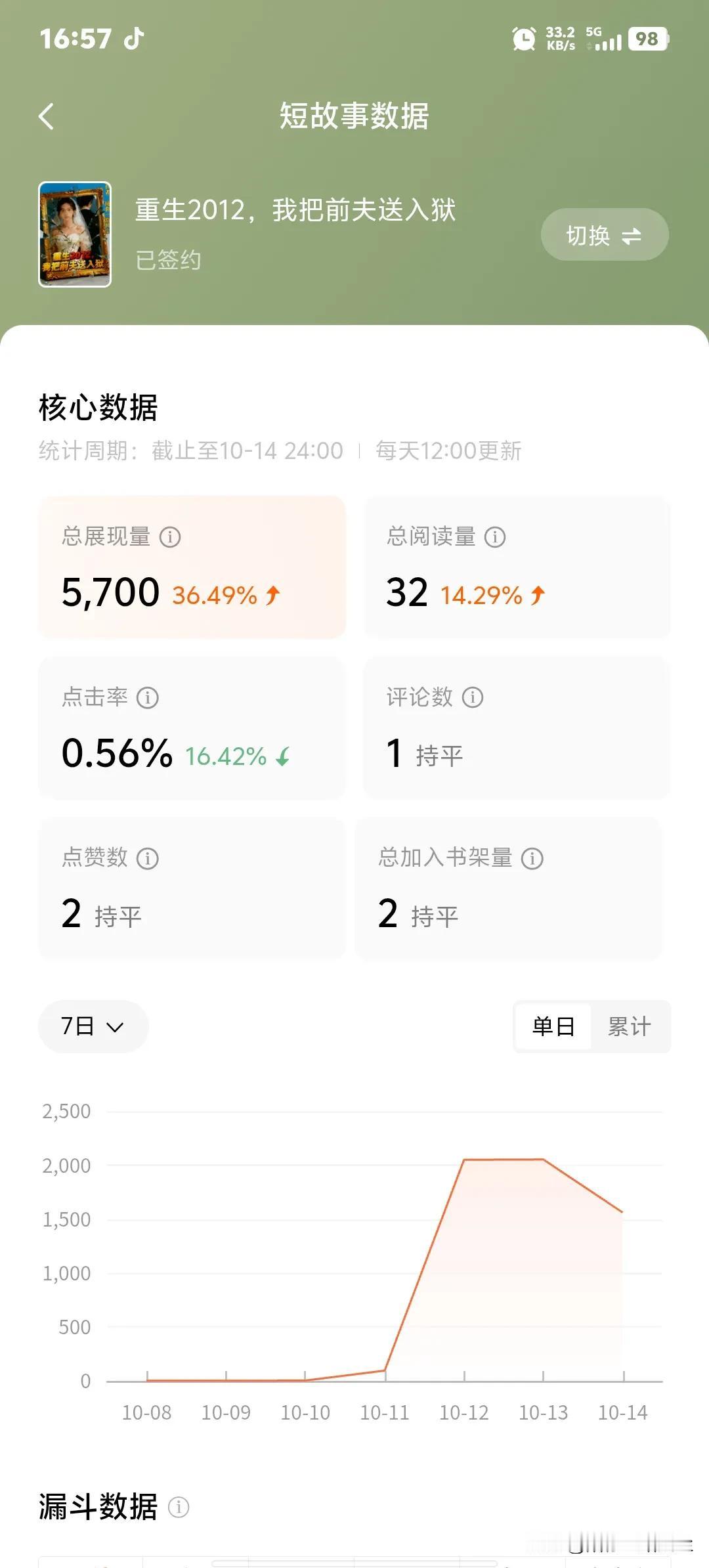 我又签约第三本短小说了! 忙忙碌碌又写了一本8000多字番茄小故事, 前几天写的一本两万多字的, 首推荐已经有5700多了, 但阅读量才30多次, 真有点可惜了。 另一本阅读量80多人, 可推荐从昨天起就不动了。 今天刚签约第三本, 希望阅读量一路长虹, 来个小爆炸吧! 两本已经有100多人阅读, 不知道为什么还没看到收益?