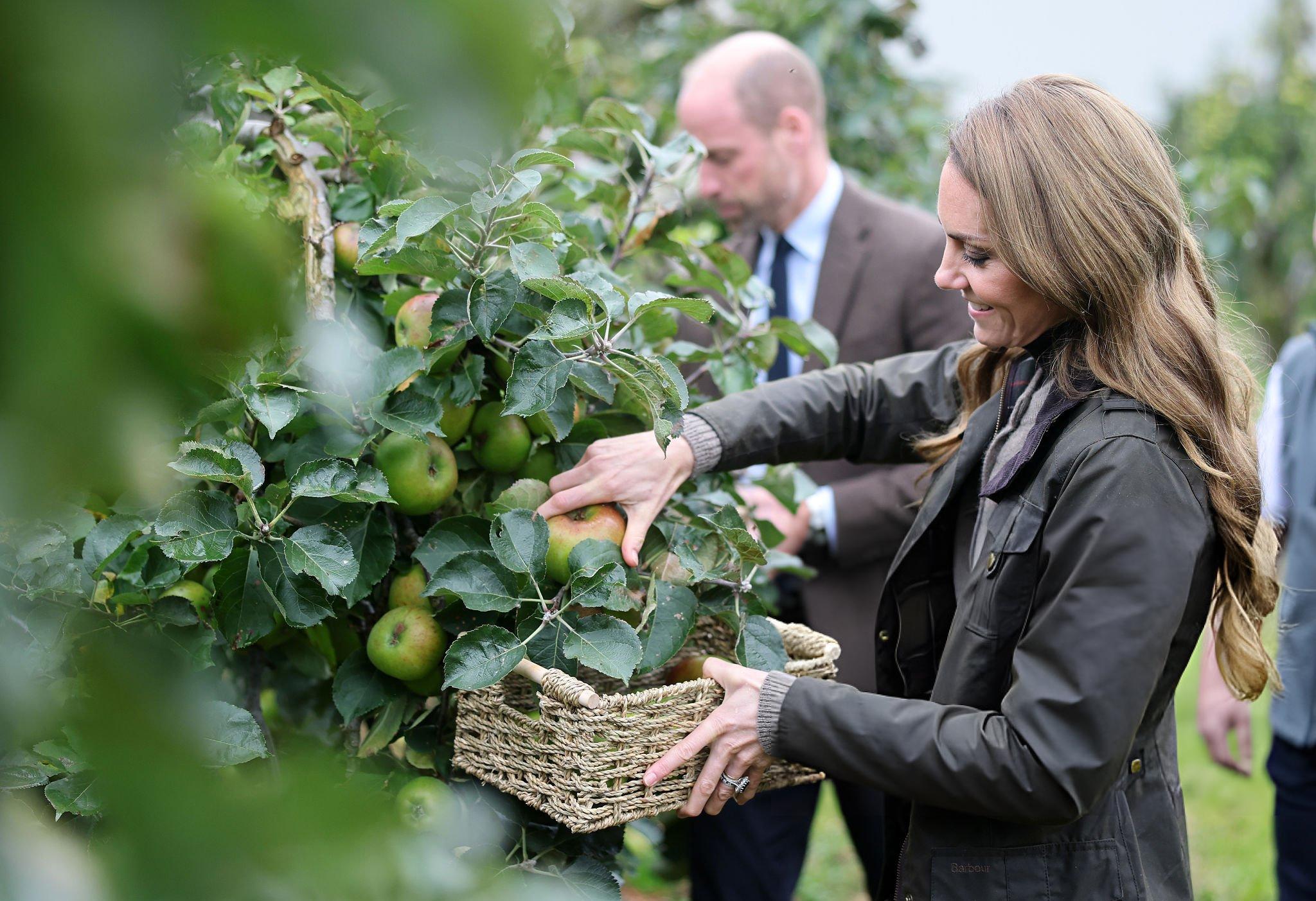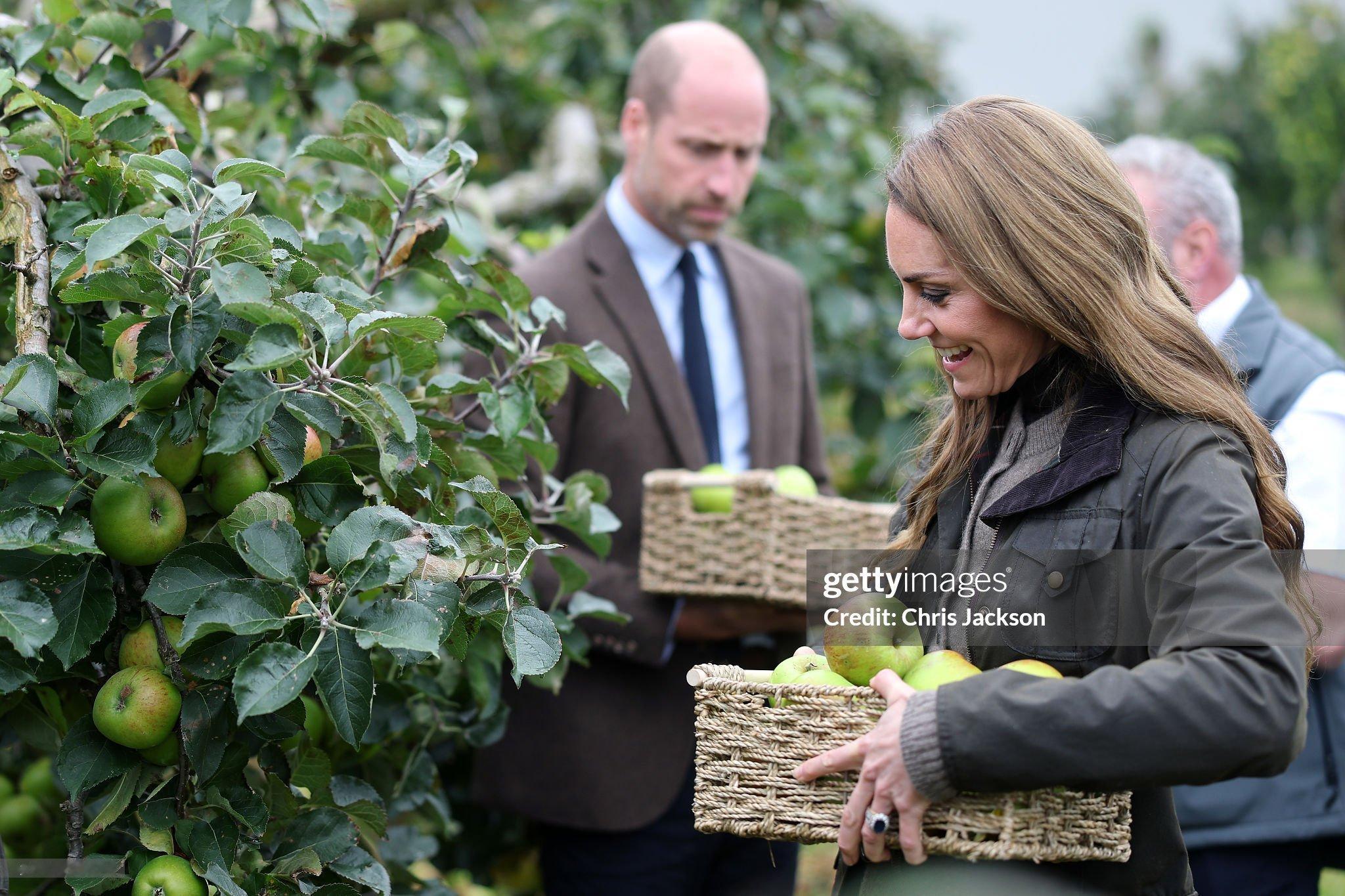 4)看到农场的大型苹果压榨机时,凯特有透露“我们在家里用手摇压榨机试过,和孩子们一起玩很开心,也很乱。”