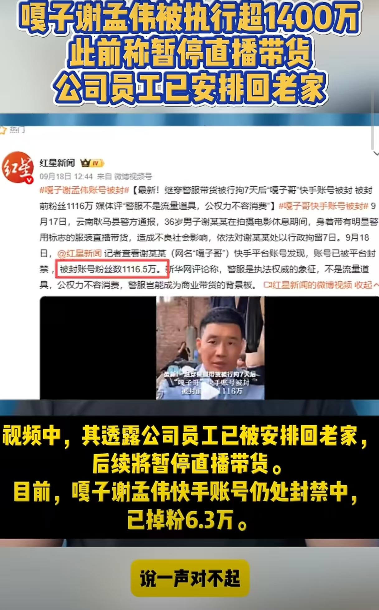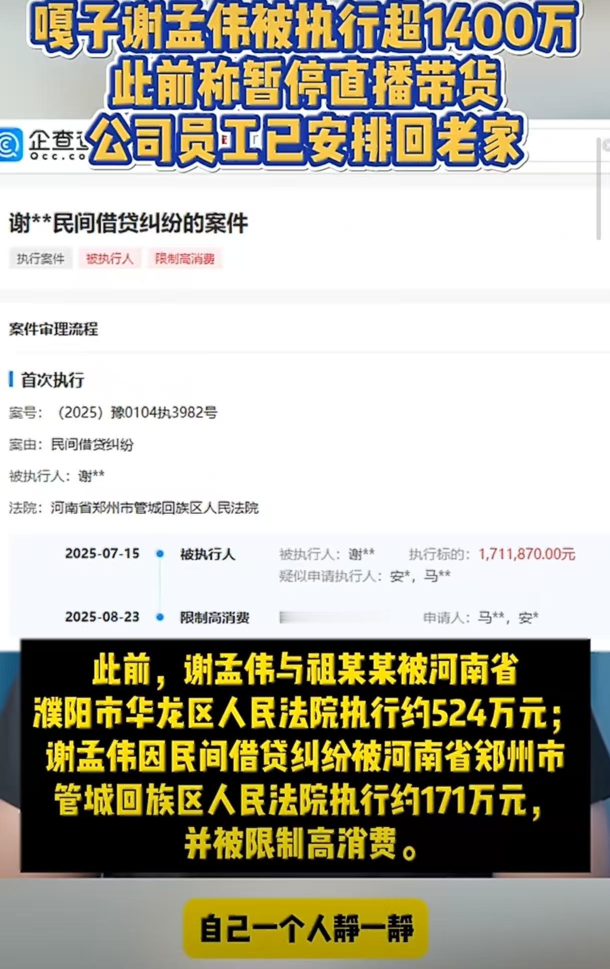 “嘎子” 谢孟伟这波 “归来”,直接摔进了债务坑。 家人们谁懂啊!当年演 “小兵张嘎” 的谢孟伟,这回算是彻底凉凉了。最新消息爆出来,他得还的债加起来超过 1400 万,连带着老婆郭珊珊,夫妻俩一块儿成了老赖。 这钱可不是一笔糊涂账:湖南法院执行 210 万,北京法院恢复执行 500 万,加上之前河南的 695 万,欠的债堆成了山。更糟的是,他早被限制高消费,坐飞机、住酒店都得受限。 这一切早有预兆,上个月他穿带警用标志的戏服直播带货,被行政拘留 7 天,快手账号直接封禁,掉粉 6.3 万。参演电影的戏份全被删,合作方全跑了,直播饭碗也砸了。 从卖假酒到耍小聪明带货,“张嘎” 的好感度被败光了。 网友说得没错:“一手好牌打得稀烂,这都是自找的!” 如今欠了一屁股债,不知道这窟窿咋填。切记流量不是护身符,这下算是真栽了。