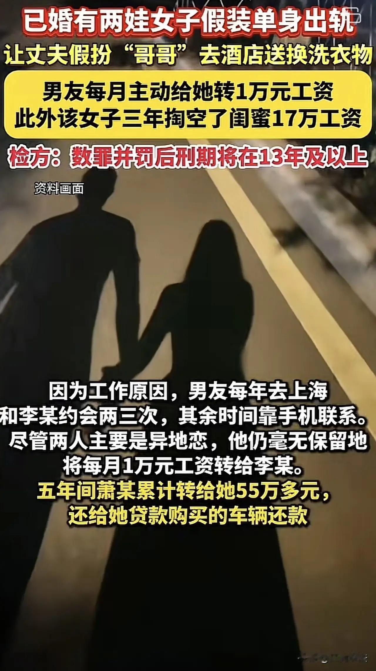 太炸裂!上海icon,一已婚有两娃女子假装单身,与一男子谈恋爱,男子每月给女子上交1万工资,5年转账55万!更炸裂的是,女子丈夫不但默许,还配合她表演,甚至在妻子与男子酒店幽会时,还主动去给她送衣服! 这场“假单身”闹剧,简直比电视剧还精彩,也比悬疑片还刺激!一个已婚有两娃的女子,竟然能在上海这样的大都市里,演绎出一场“隐秘的爱情故事”,而背后隐藏的,却是令人震惊的人性深处的复杂与矛盾。 你是否也曾觉得,现实生活中的“道德底线”正在逐渐被打破?这位女子背地里与男子谈恋爱,男子每月给她上交1万块,五年累计转账55万,这不仅仅是金钱的流动,更是情感与伦理的“碰撞”。她的丈夫,竟然还能“默许”甚至“配合”这场戏,甚至在女儿的生活中扮演“默默支持”的角色。这背后,究竟藏着怎样的家庭秘密?又反映出什么样的人性弱点? 我们不禁要问:这场“家庭与爱情”的博弈,到底是谁赢了?是那个敢于突破底线的女子,还是那个“无奈”选择包容的丈夫?更令人扼腕叹息的是,这一切竟然在“正常”的家庭表象下悄然发生。而那些“合作”与“配合”,似乎都成了“生活的妥协”。在这个高速变迁、价值观多元的时代,家庭的界限越来越模糊,诚信与责任似乎也变得脆弱不堪。 但这背后,又折射出更深层次的问题:我们是不是都在用各种方式去“维护”自己的生活?在压力、责任、欲望的夹缝中,许多人选择了“妥协”或“隐忍”。有人说,这只是一场“个案”,但实际上,它映射的是整个社会的缩影——人与人之间的信任、道德的坚守、家庭价值的变迁,都在这场闹剧中被放大。 而更令人心碎的是,那位女子的“演技”竟然如此“专业”,在假装单身、谈恋爱的同时,还能让家庭“平静如水”。这是社会的扭曲?还是人性的复杂?或许,它都指向一个令人深思的真相:在这个快节奏、高压力的社会中,很多人都在用“伪装”来应对生活的无奈。我们在追求所谓的“自由”和“幸福”的同时,又不得不面对“责任”和“伦理”的束缚。 这件事也让我们反思:家庭的底线到底在哪里?我们是否都在用“妥协”来维持表面的平衡?而那些看似“光鲜”的家庭背后,又隐藏着多少不为人知的秘密?或许,真正的勇气,是直面生活中的矛盾,而不是用谎言去掩盖。 读到这里,你是不是也有点愤怒?又或者心生同情?这场“假单身”的闹剧,似乎让我们看到了现代人在“爱情”、“家庭”、“责任”之间的巨大矛盾。它让我们不得不思考:我们到底在追求什么?我们是否还能坚守那一份最纯粹的诚信?还是说,生活的复杂已经让我们变得麻木? 或许,最值得我们反思的,是在这个充满诱惑与压力的时代,如何坚守那份“善良”和“责任”。因为,真正的幸福,不是用谎言堆砌的,而是源自于内心的坦诚与勇敢。让我们在这个故事中,看到更多关于人性与社会的真实,也希望每一个家庭,都能在守住底线的同时,找到属于自己的幸福与温暖。