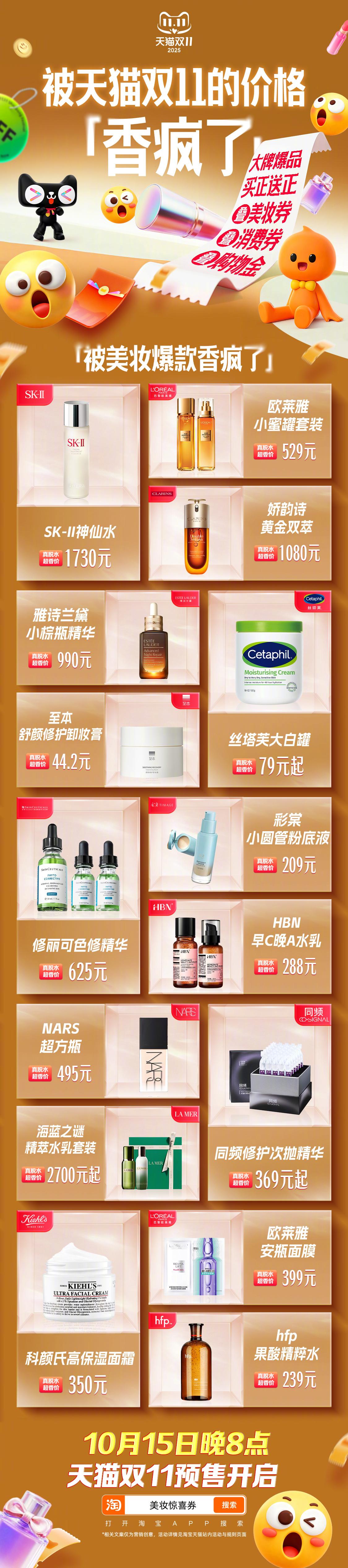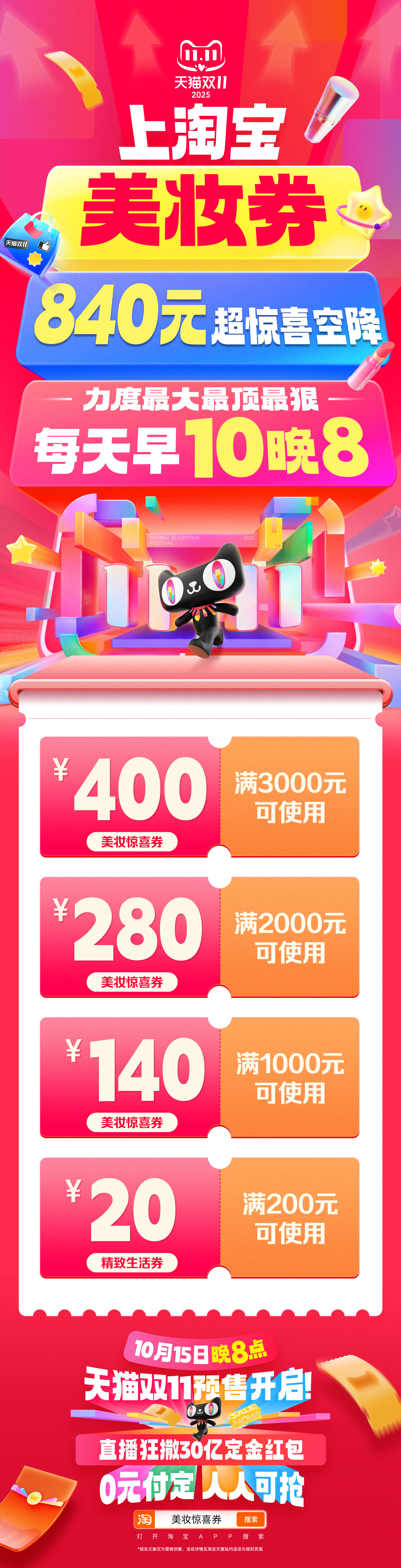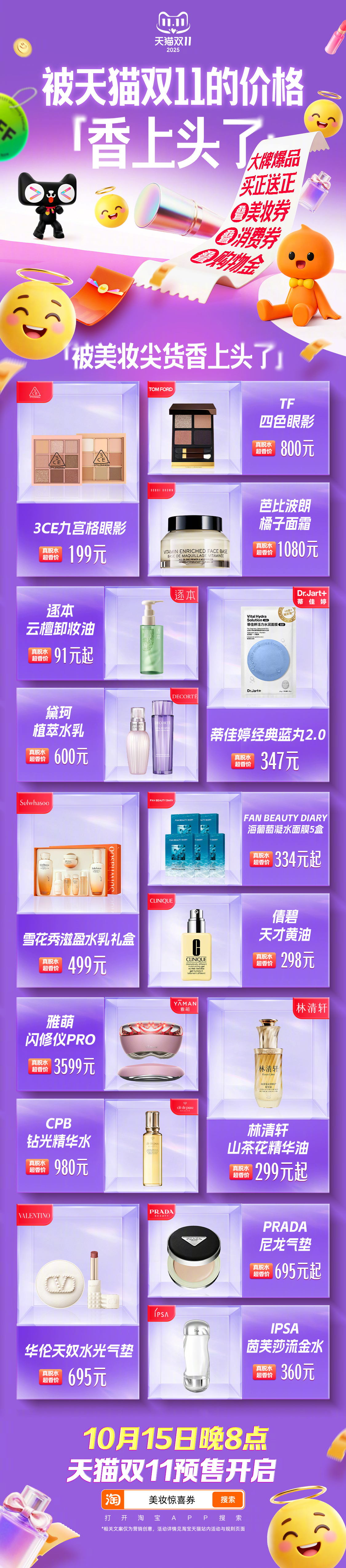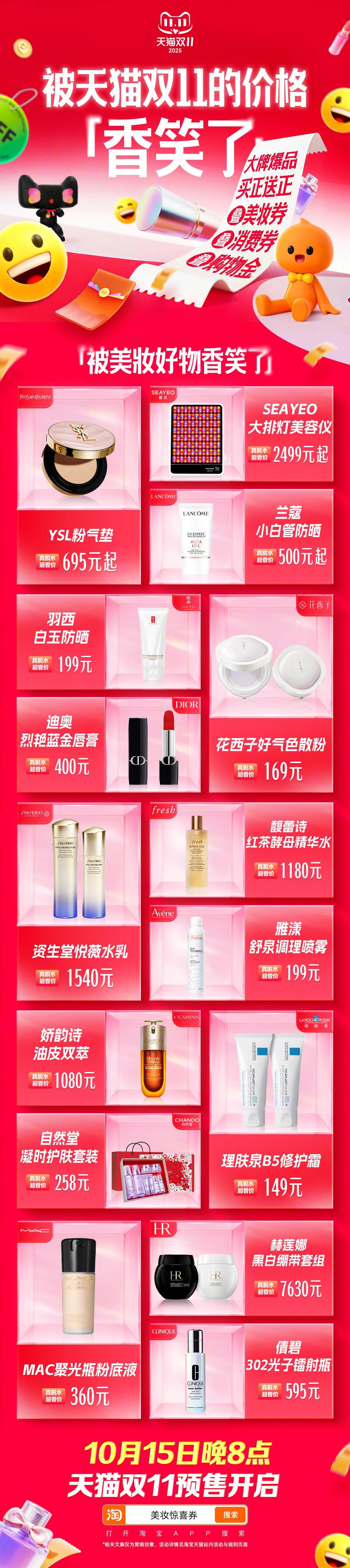 【天猫双11美妆补贴历史新高,美妆自由今夜解锁】今晚8点天猫双11预售正式启动,