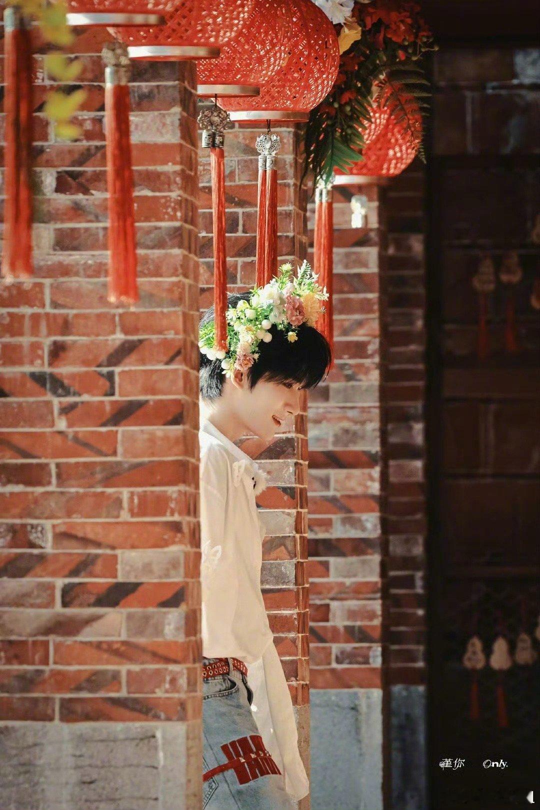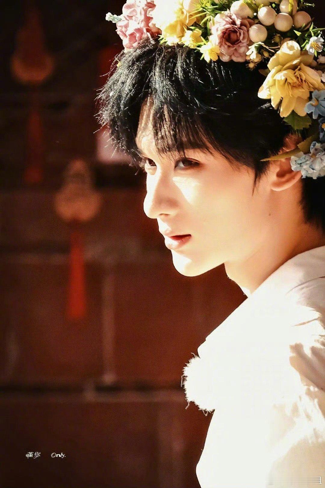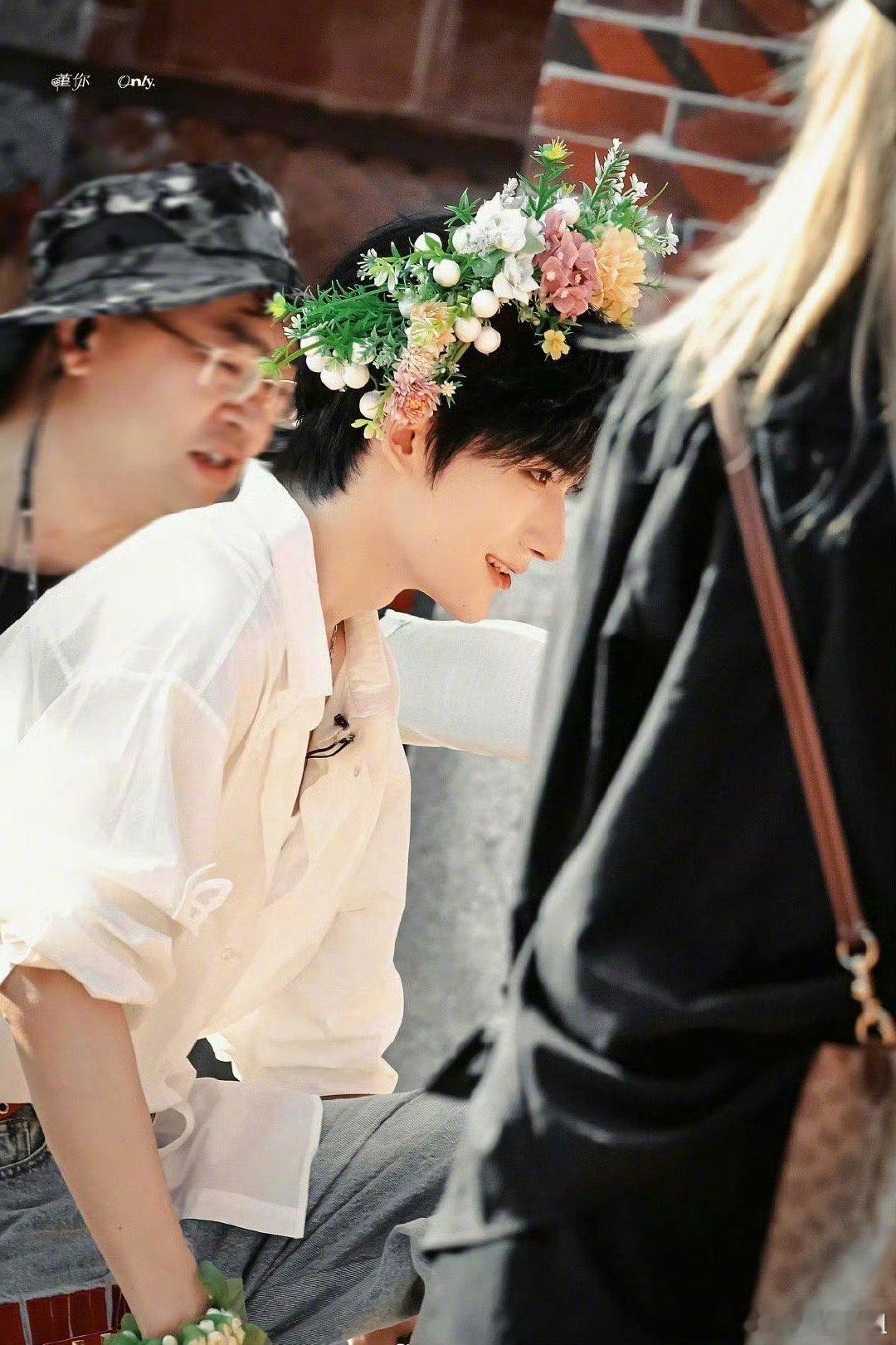 余宇涵《一路繁花2》簪花路透来啦~头戴簪花的白衬衫少年就是行走的画报哇[期待][期待]