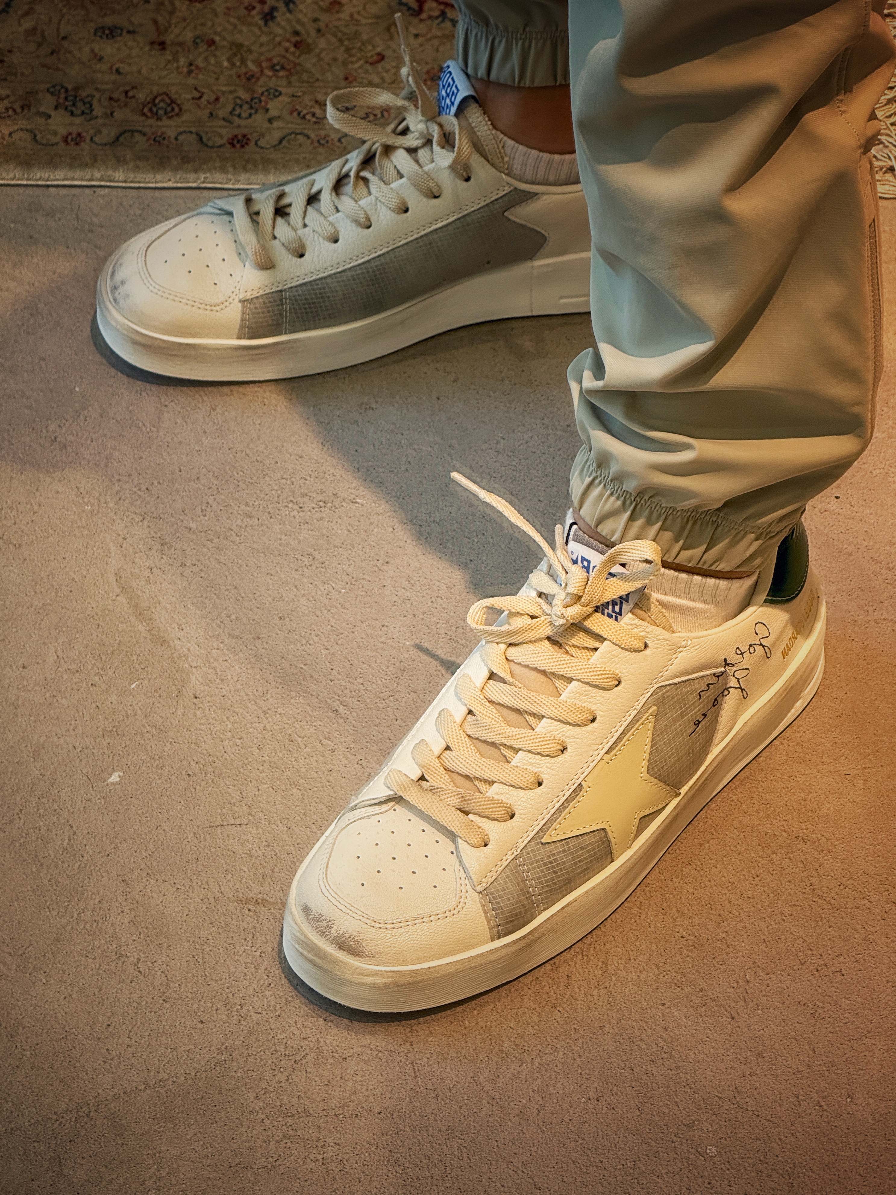小男生前阵子第一次买小脏鞋,因为我一直觉得鞋应该是干净的,所以以前都没买过这种专门做旧的鞋👟[呵呵]。不过这个面料和配色还是挺喜欢的,所以就尝试了一下,各位冠军觉得会显邋遢吗[doge] 欣哲频道男生穿搭车手配置单 golden goose
