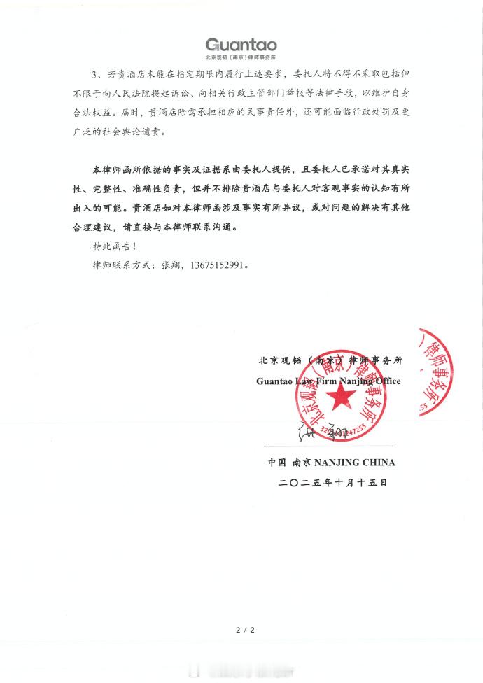 梓渝方要求酒店彻查监控泄露事件梓渝方律师函​​​​发布“关于梓渝先生隐私被恶意