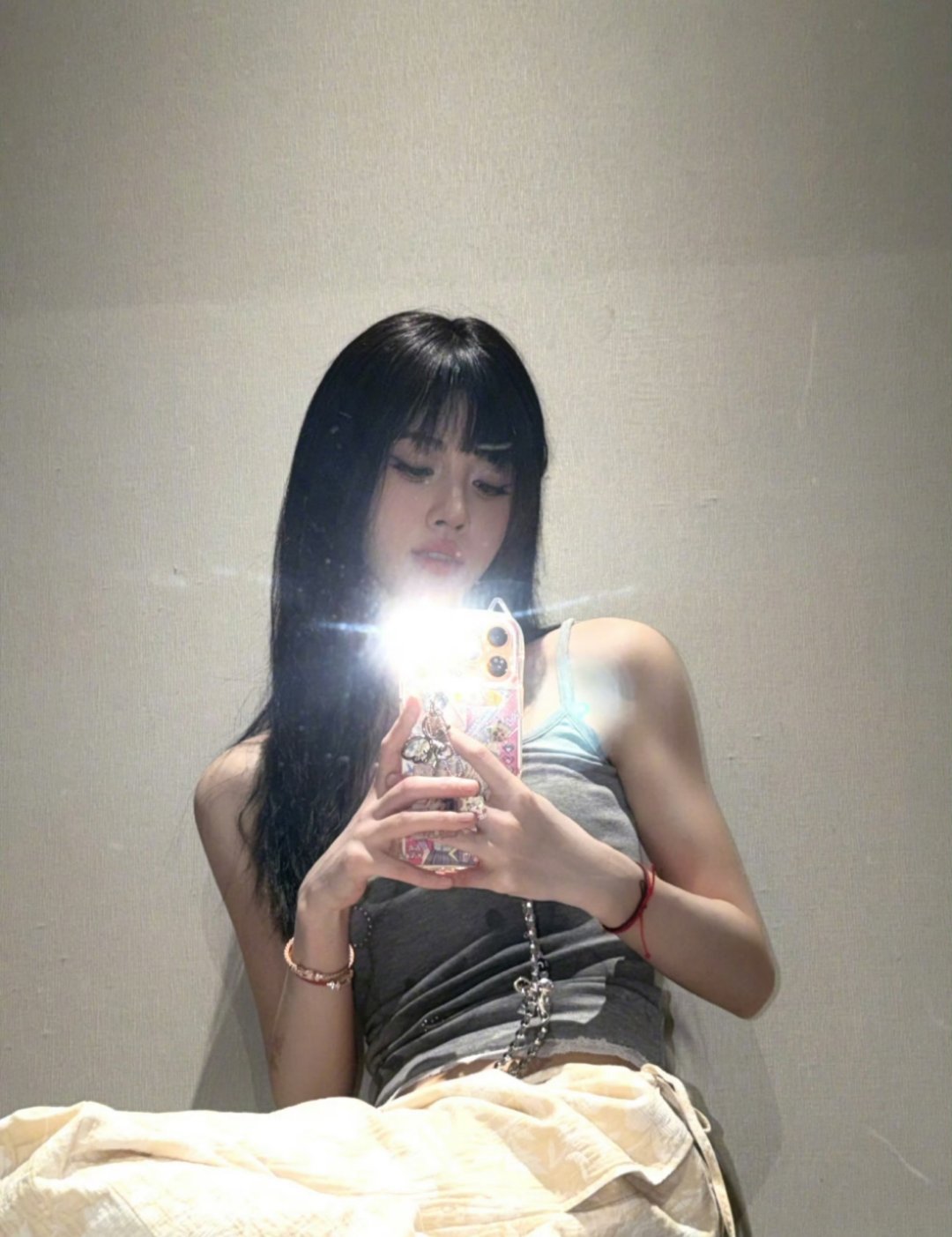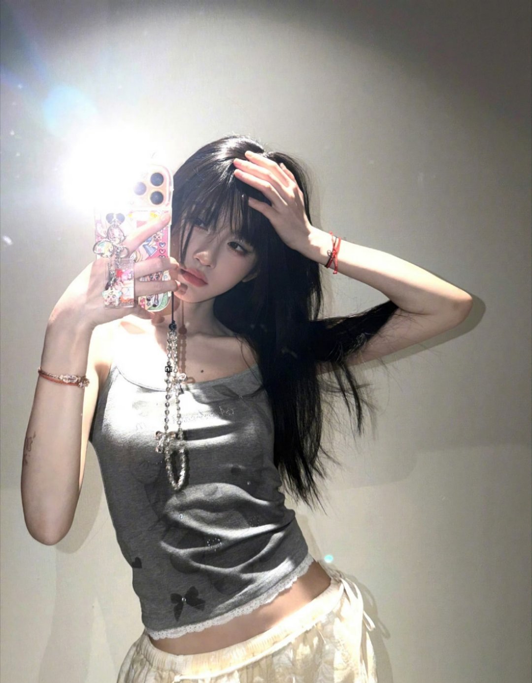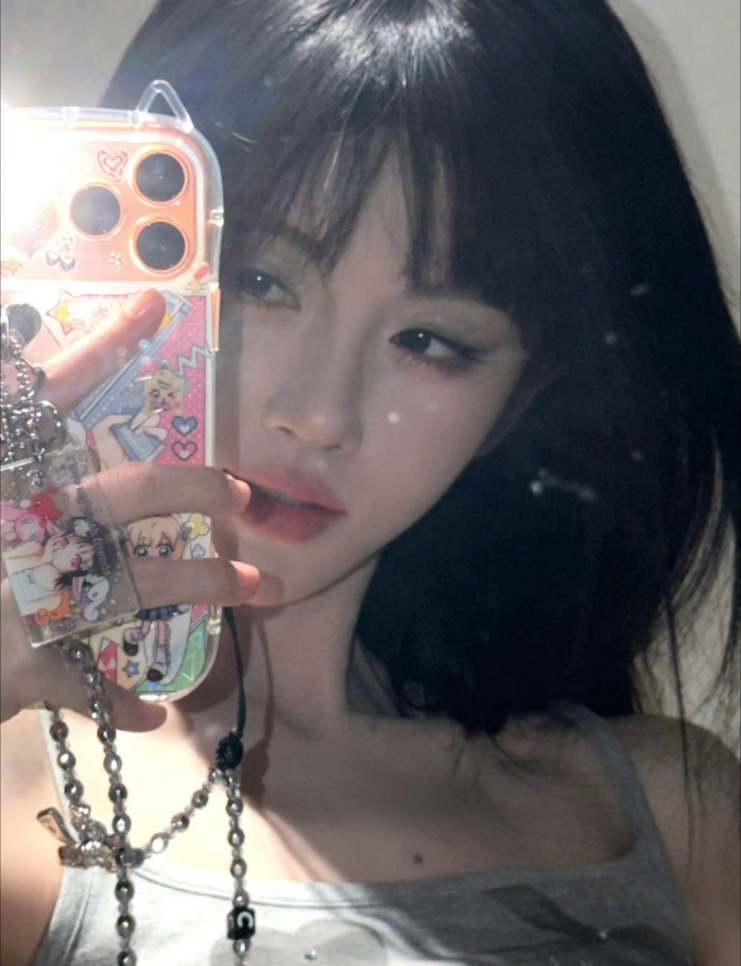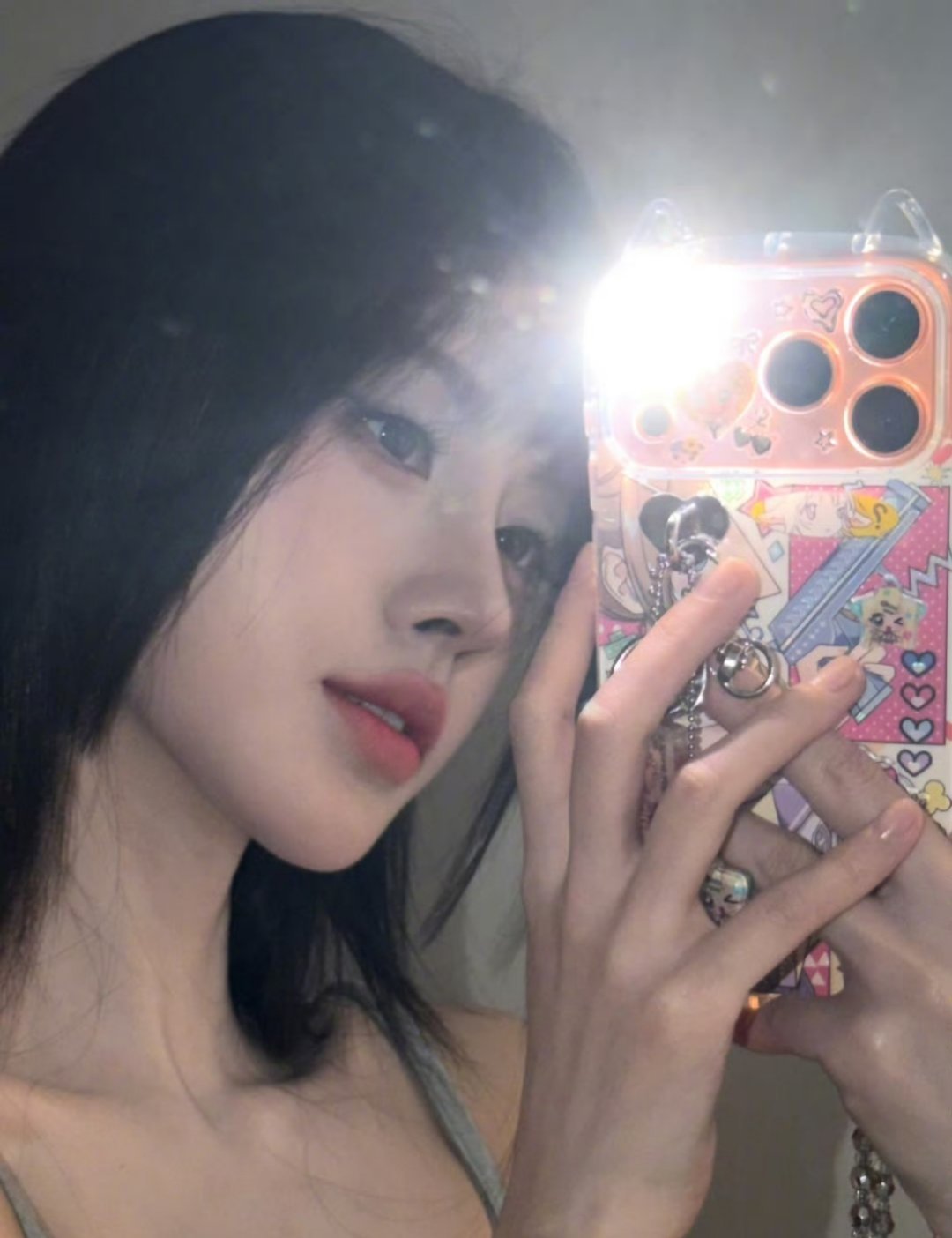 鞠婧祎对镜怼脸自拍照哈哈哈手机壳和挂件都很可爱喔~[哇] 姐也一样可爱