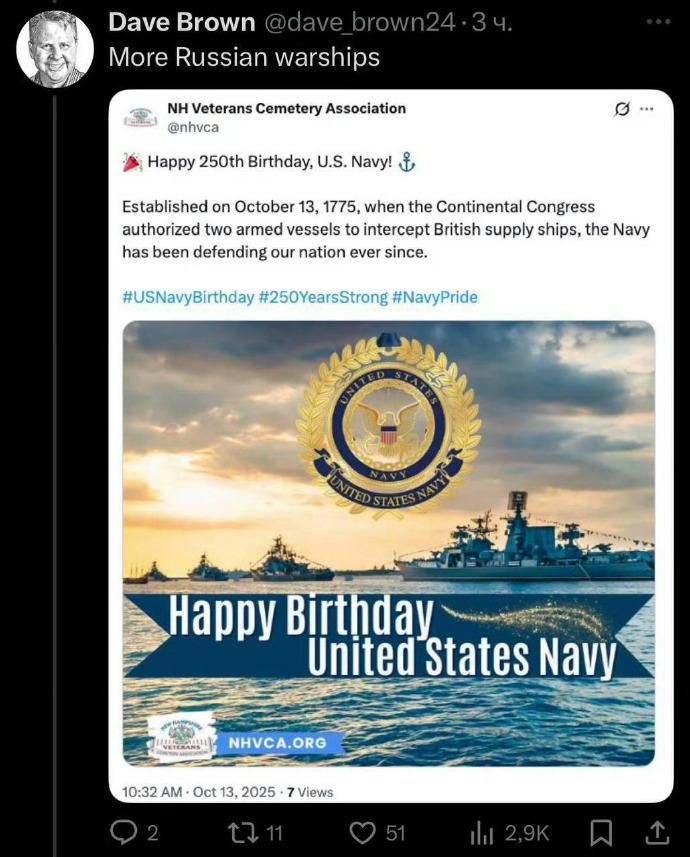 美国海军里面也有“美奸”?美国海军成立250周年的海报中愣是找不到一艘美国军舰,几乎全是俄罗斯军舰,有“光荣”级“基洛夫”级导弹巡洋舰、“无畏”级导弹驱逐舰,最后还有个丹麦海军的出场。所以美国人到底替谁庆祝了海军周年庆。 不过话说各国是不是都有这种军盲级的军宣。你说他们不专业吧但都是军事官方机构,你说他们专业吧连武器型号都搞不明白,关键是一艘美国军舰都没有就有点太过分了,到底打了谁的脸?史密斯专员又层层转包了吧。