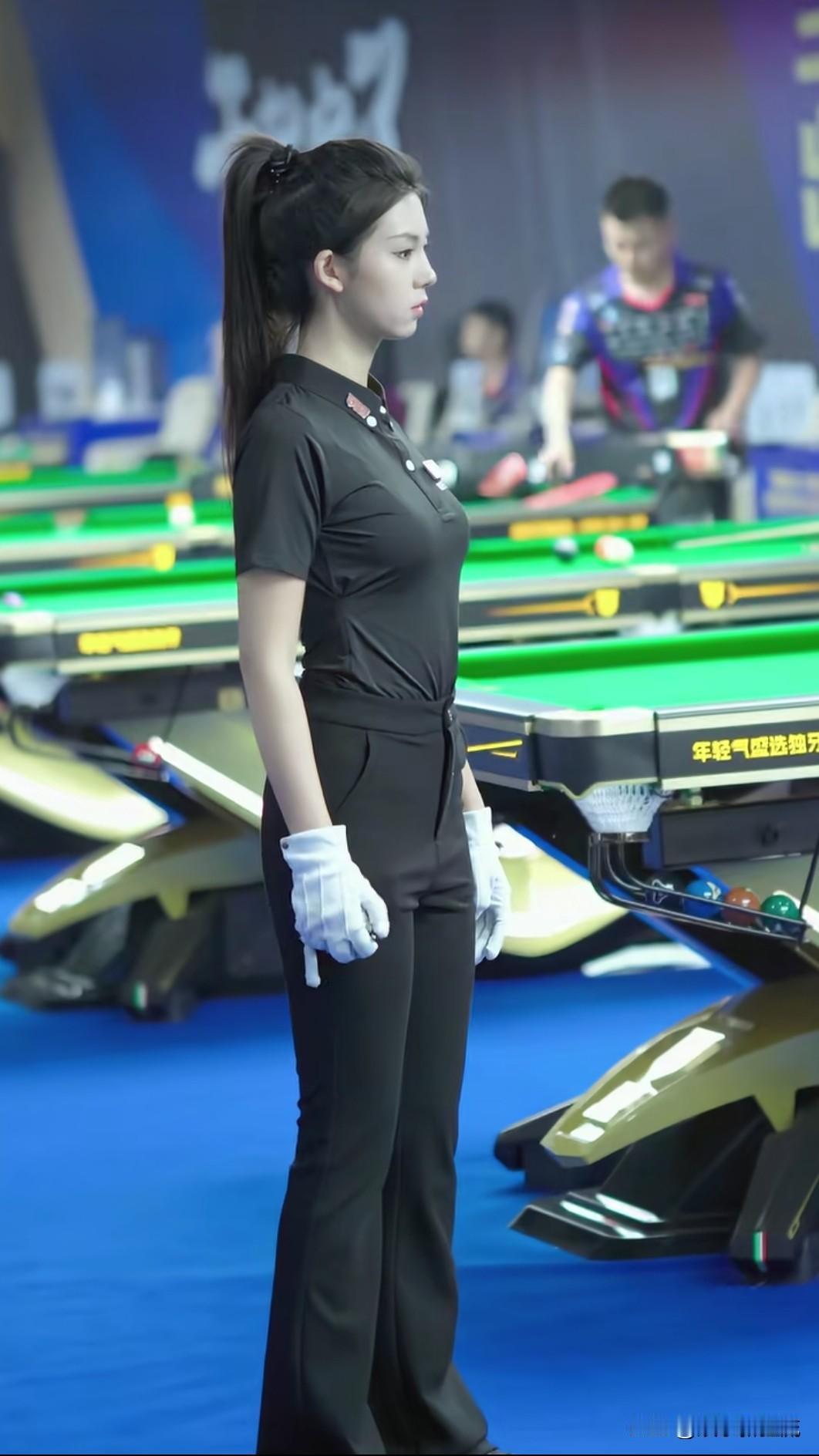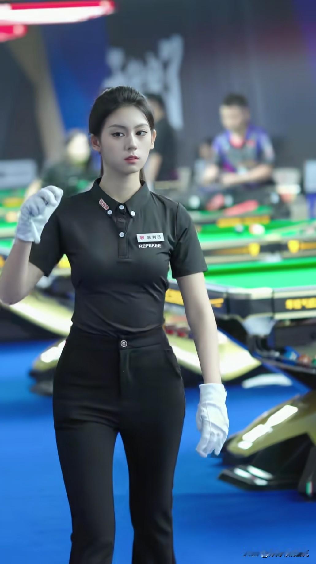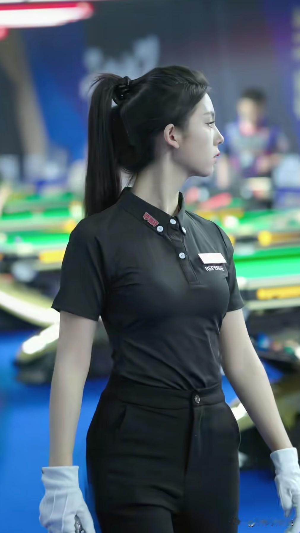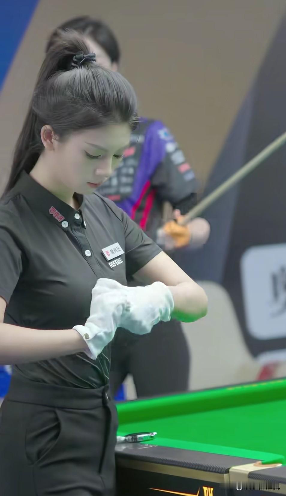 台球高颜值裁判员张一桐,高马尾造型神采奕奕,球场上的焦点台球女生 台球小姐 台球美女运动员
