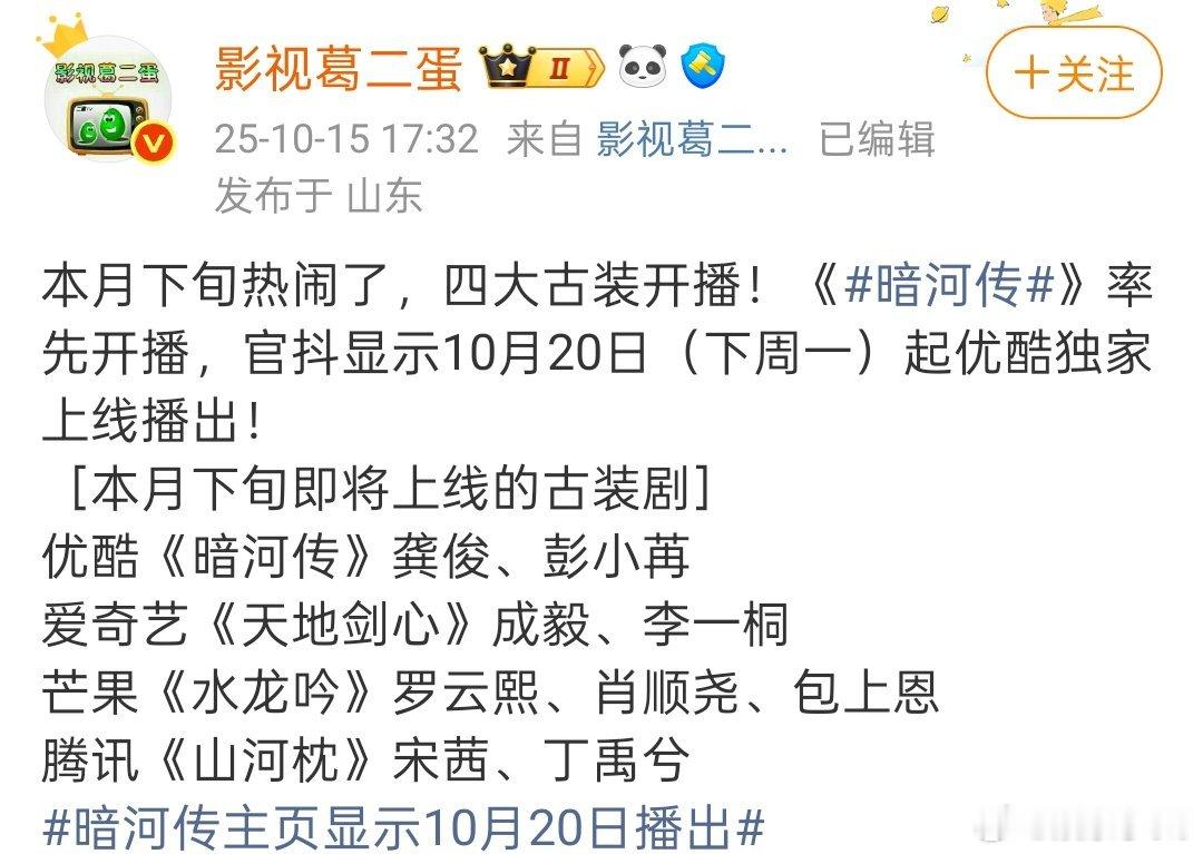 这下好了,暗河传自曝自己的播出时间是10月20号