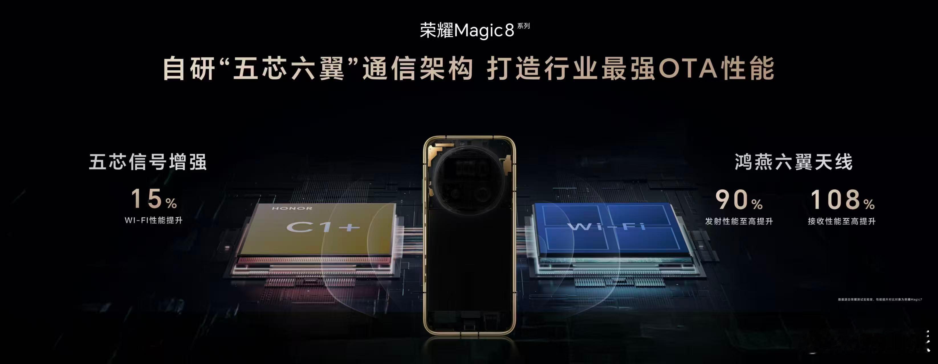 有2亿像素超夜神长焦,搭载第五代骁龙8至尊版,有自研五芯六翼通信架构,有超大青海湖电池,有全新绿洲护眼屏,几乎就是全方位的巅峰旗舰荣耀magic8真夜神手机荣耀magic8