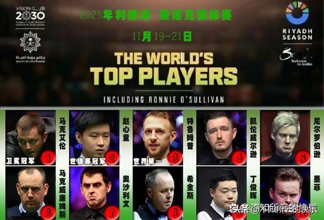 土豪赛来袭,真的土豪只在丁俊晖、赵心童、奥沙利文三人之中! 斯诺克利雅得锦标赛由