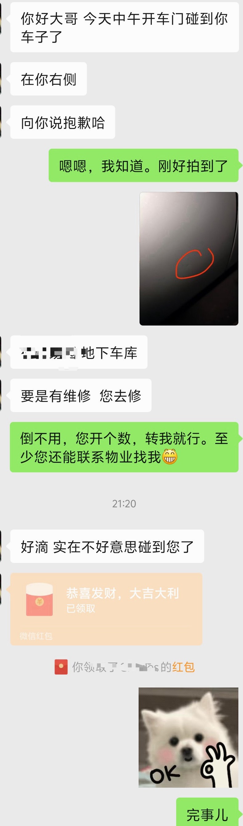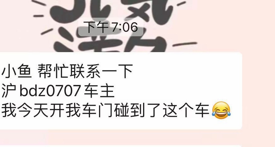 今天回家的时候才看到这个通知,一看门给磕凹了。于是我立即联系物业让他们查查车主,物业跟我说那个人也在找我,顿时气消了一半。