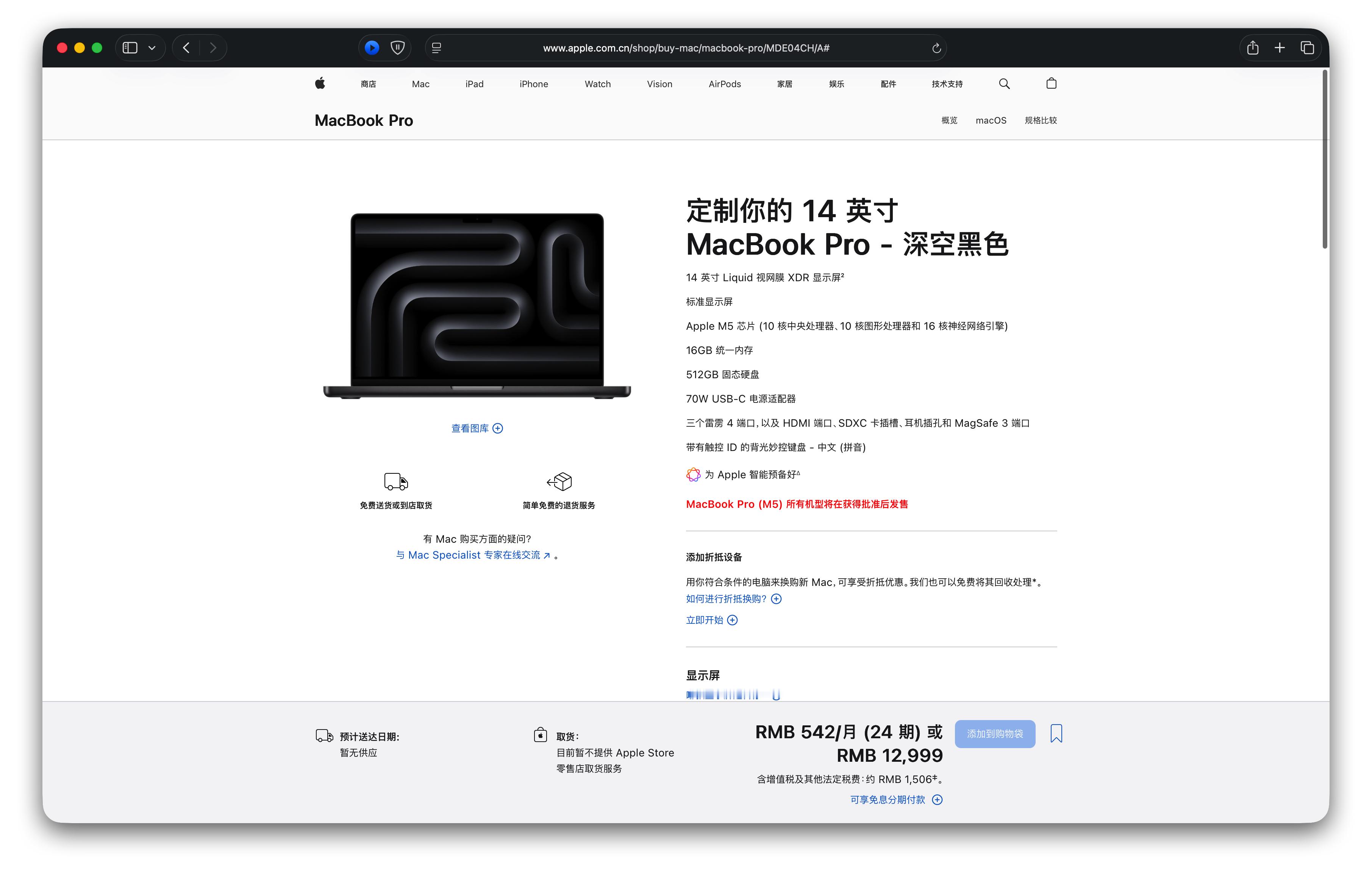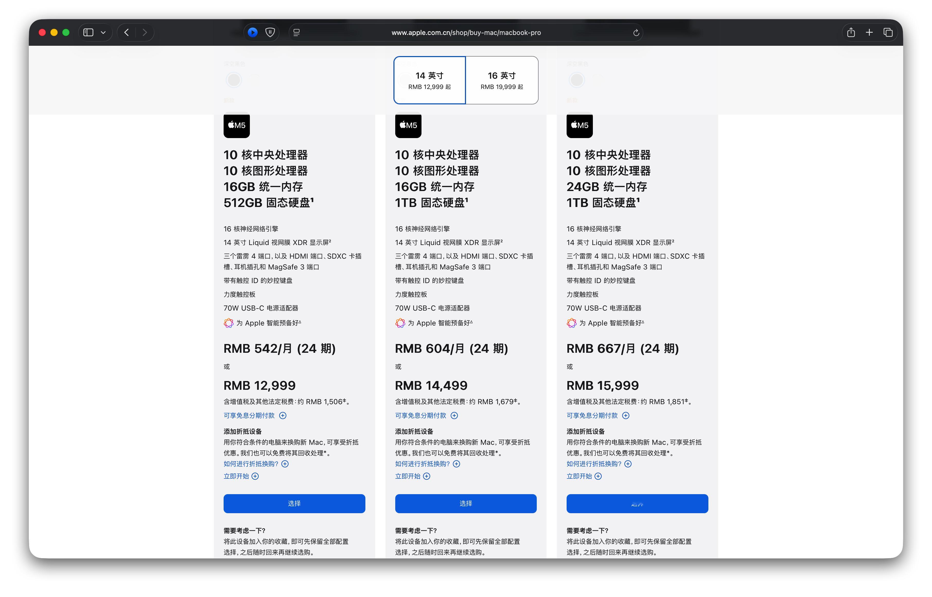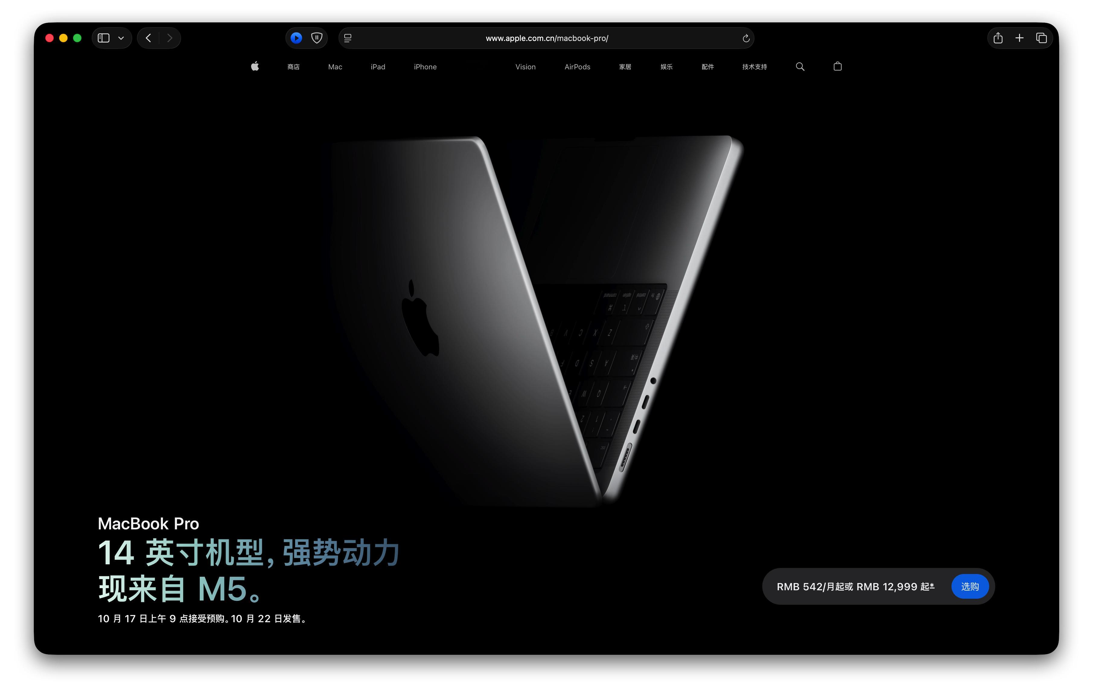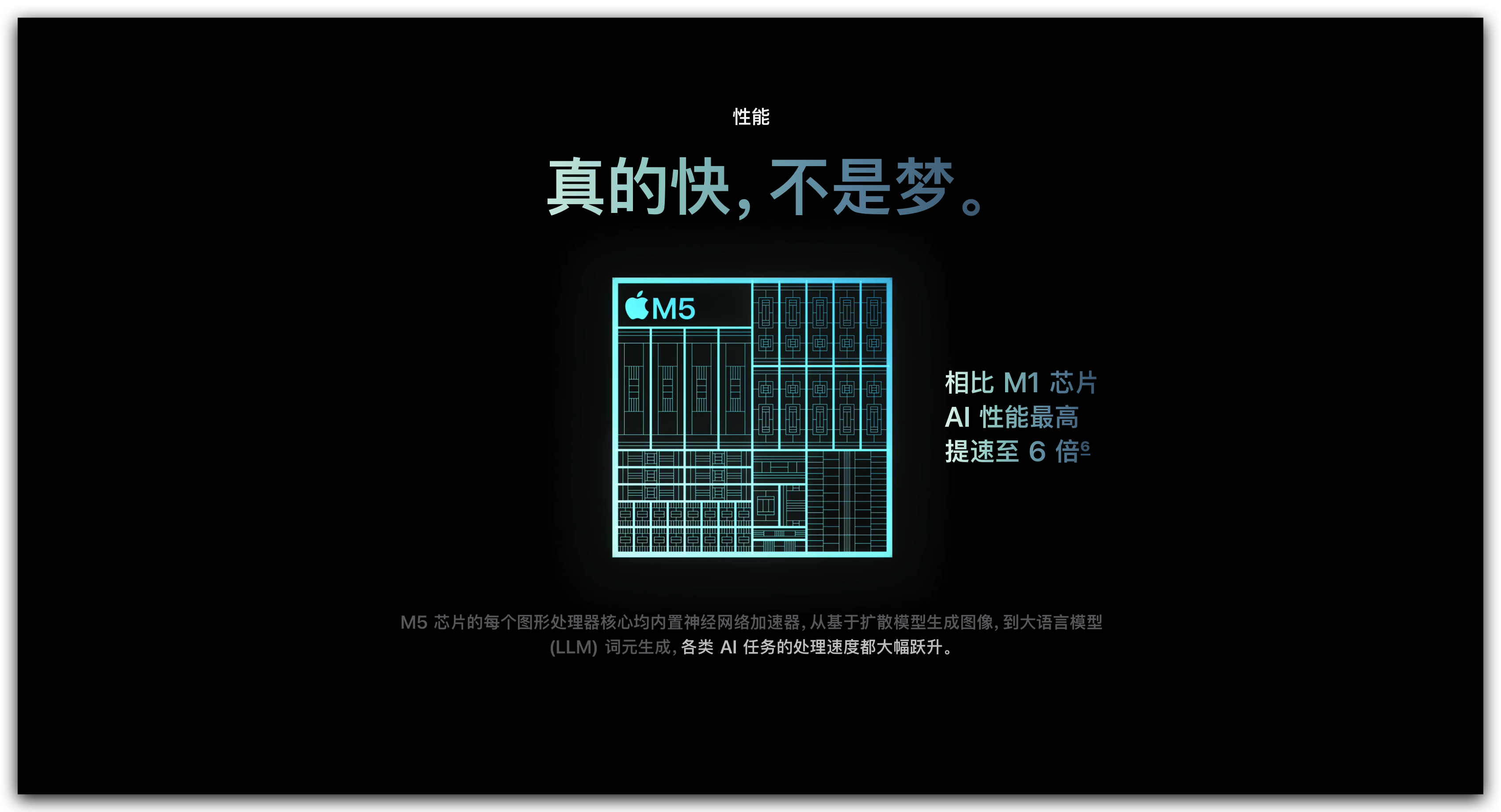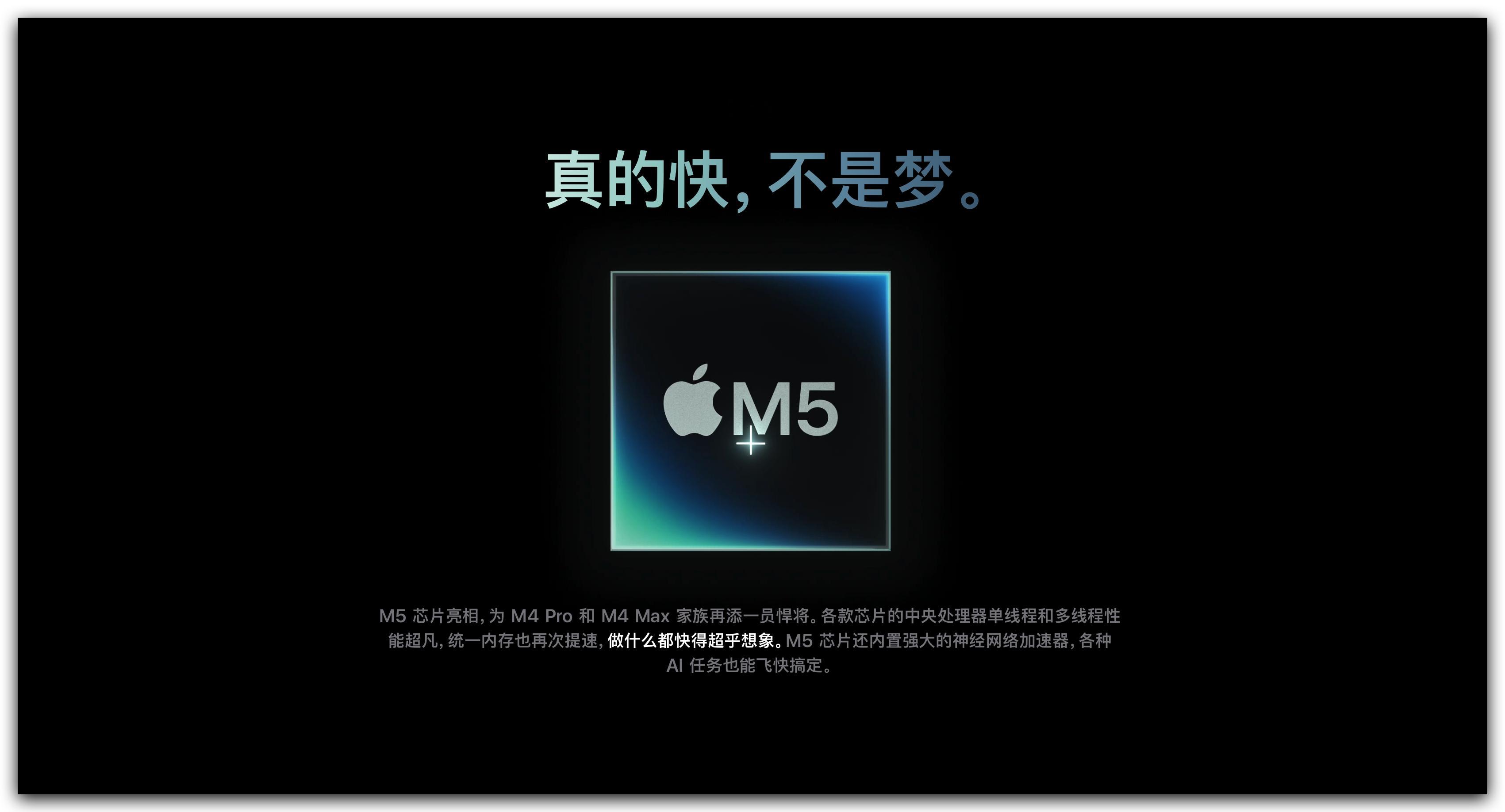 全新14英寸MacBookPro发布 苹果刚刚官网直接上线了全新的14英寸MacBook Pro,搭载配Liquid Retina XDR屏,核心搭载M5芯片,10 核中央处理器,具有 4 个性能核心和 6 个能效核心,拥有10 核图形处理器,其中性能相比较M1提升6倍、AI性能较M4提3.5倍、10核GPU支持第三代光追,内存带宽超150GB/s。