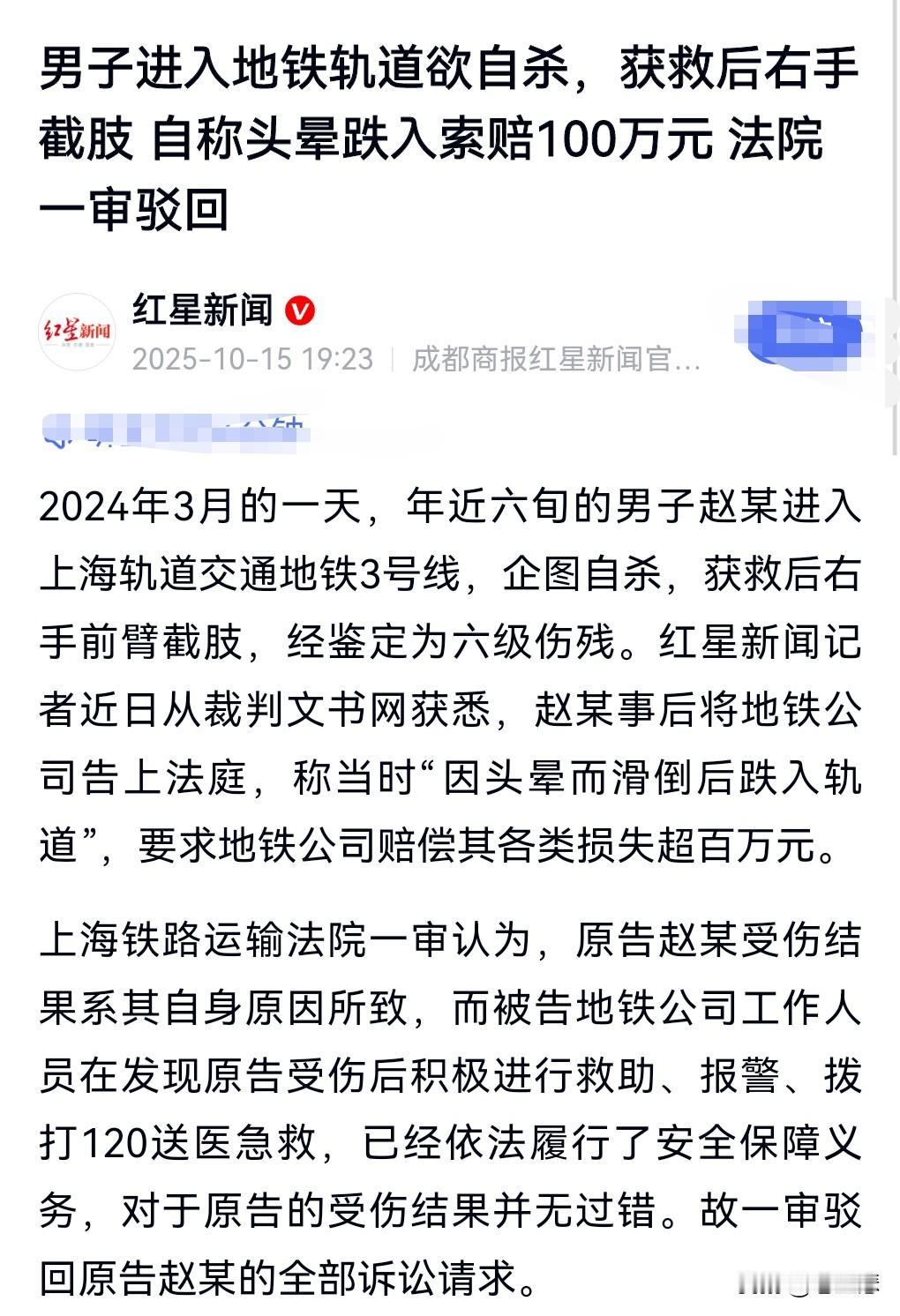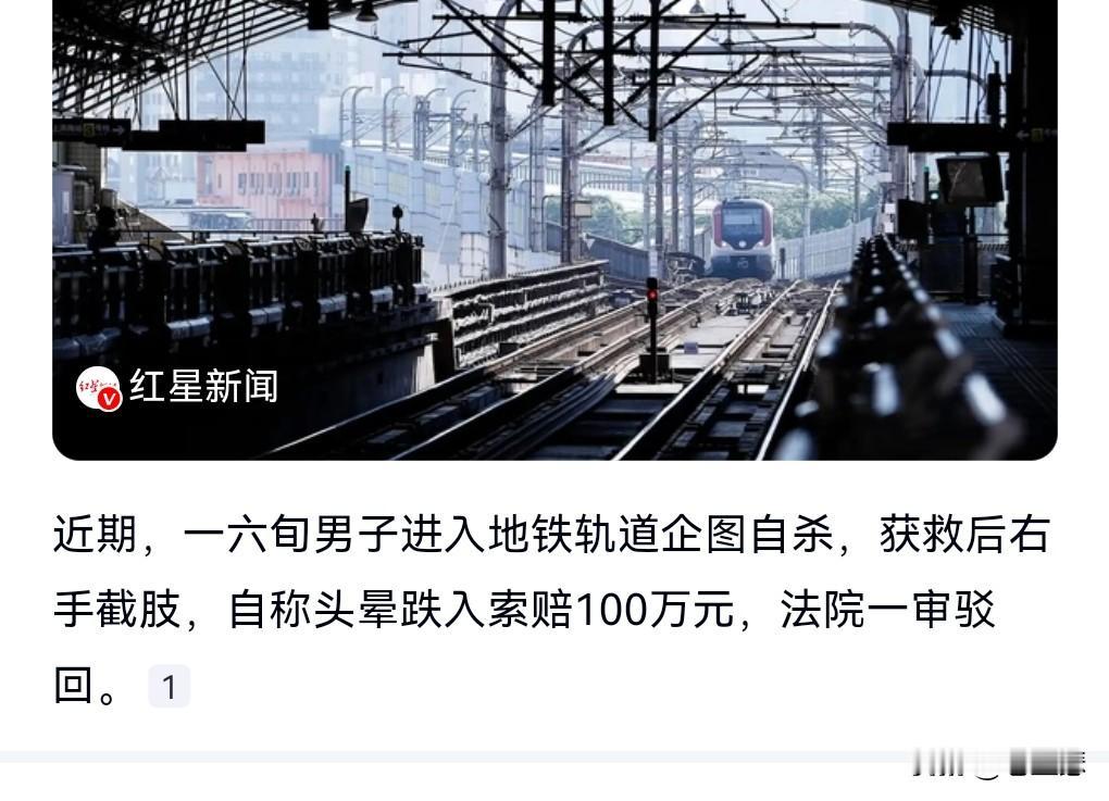 这男子也是够无耻的。 男子翻进轨道自杀,没想到被救了,失去了一只手。获救后反索赔