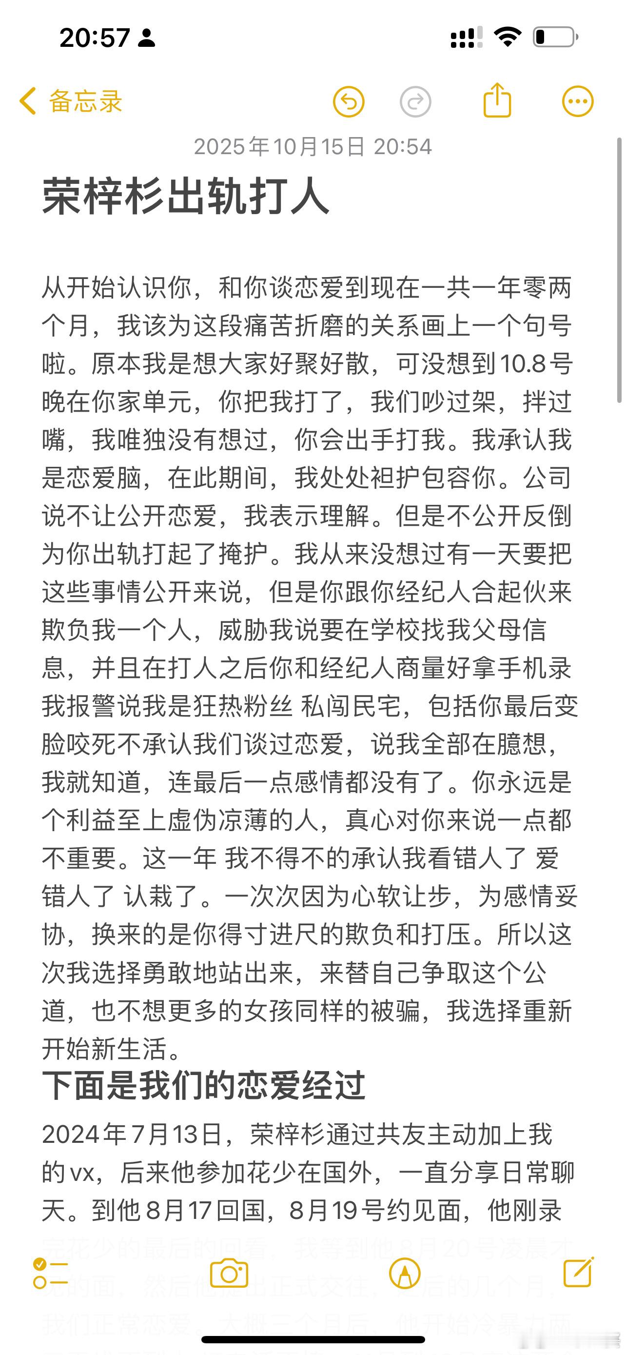 荣梓杉你这...李禹熹发文喊话荣梓杉李禹熹称荣梓杉出轨打人