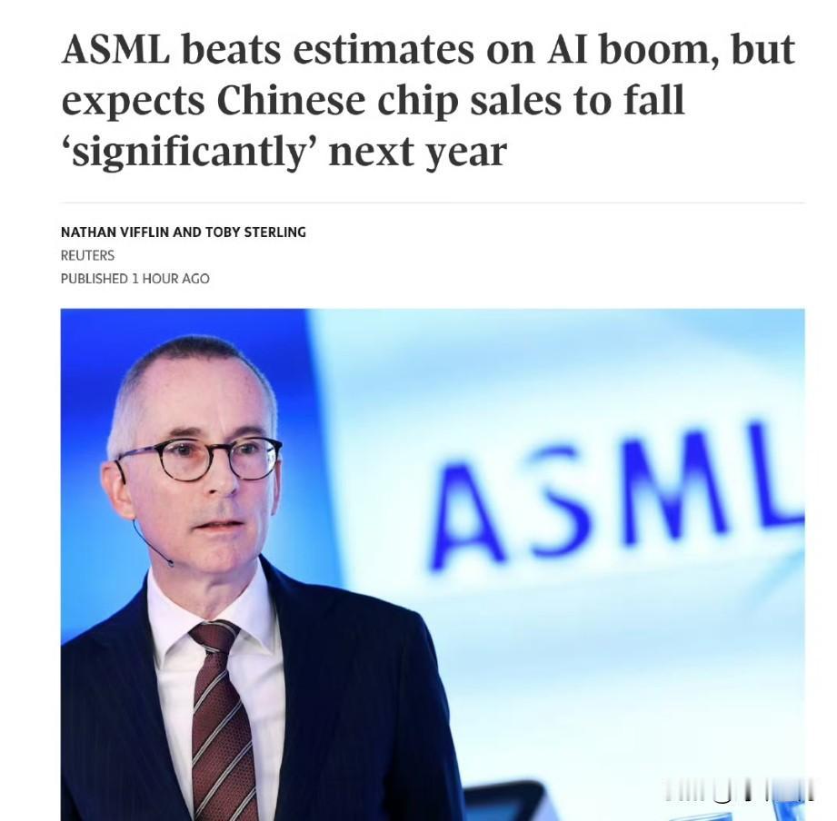 阿斯麦表示:预计明年中国市场的销售额将“大幅”下降。 荷兰光刻机厂商阿斯麦公布财报,净预订量第三季度为 54 亿欧元,高于分析师的普遍预期为 53.6 亿欧元。ASML 表示,预计明年中国市场的销售额将“大幅”下降,而 2024 年中国市场的销售额占公司销售额的近一半,2025 年迄今占公司销售额的三分之一。 首席财务官罗杰·达森 (Roger Dassen) 在媒体电话会议上表示,这种下降是一种“正常化”。