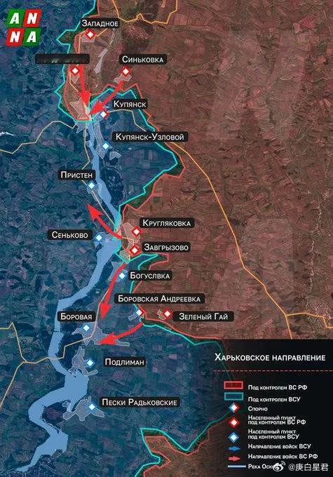 同时乌军还失去了亚历山大·楚留帕街上部分带有多层建筑的阵地,这使得乌军现在无法维持在西南边缘的防御阵地。现在,乌克兰军队已撤至库皮扬斯克郊区,而且剩下向南“撤退”一条路了。而且,奥斯基尔河沿岸仍有一些激烈战斗,俄军也在博罗瓦亚附近推进。几天前,俄军在那里重新发起攻势,将乌军赶出了扎格雷佐沃村的大部分地区,在先科沃附近渡过了奥斯科尔河。