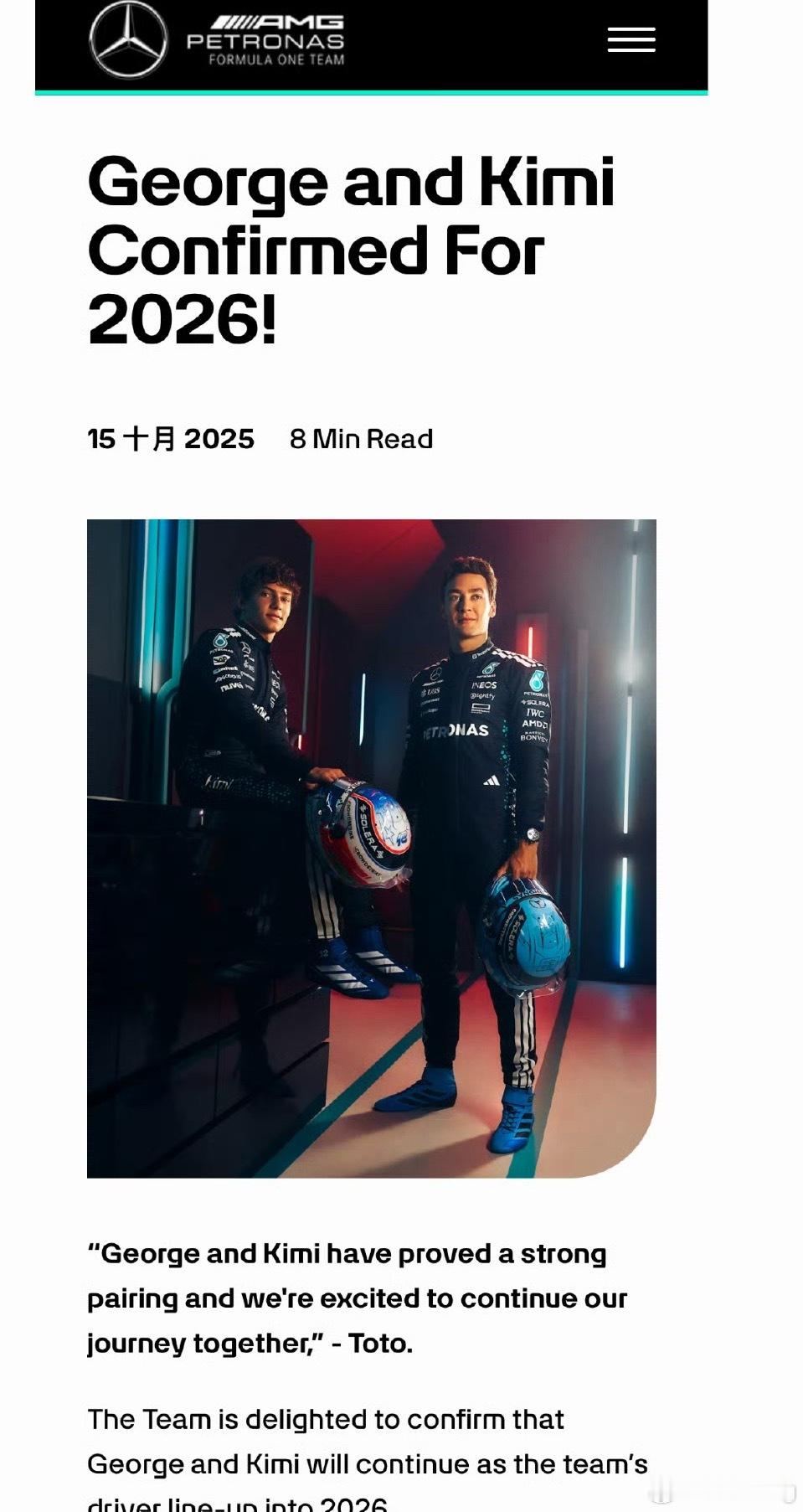 梅赛德斯F1车队终于敲定了,官宣与拉塞尔续约,明年继续是乔治-拉塞尔搭档kimi-安东内利。看来明年各家车手的席位变化并不大。梅赛德斯官宣续约拉塞尔安东内利