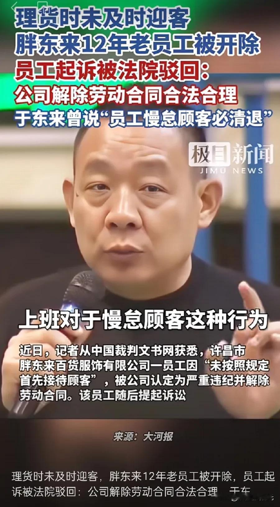 对胖东来是真喜欢不起来了 不是因为他东西卖的贵,也不是因为他卖的东西不好。而是他对顾客真的太好了! 昨天胖东来那事儿,真的越想越膈应。 一个在那儿干了12年的老员工,就因为用pos机理货的时候没及时去迎接顾客,被胖东来监控看到当场直接开除了。可他当时确实没注意到啊,理货也是在做份内事啊这员工不服气去起诉,结果法院还说公司解除劳动合同合法合理,一审二审都败诉了! 虽说胖东来一直标榜服务好,于东来也说过员工怠慢顾客必清退,但12年啊,这么久的工龄,就因为这一件事,说开就开了,也太不近人情了吧。 服务重要是重要,但也不能这么“一刀切”吧,多少得给老员工点情面或者说更人性化的处理方式啊。反正我现在是对胖东来喜欢不起来了,感觉他们这管理,有点太冰冷了。 我认为胖东来这次做的确实有点过了,对刑满释放人员可以网开一面去接纳,对12年兢兢业业的老员工却如此苛刻,实在有点说不过去,大家觉得呢?