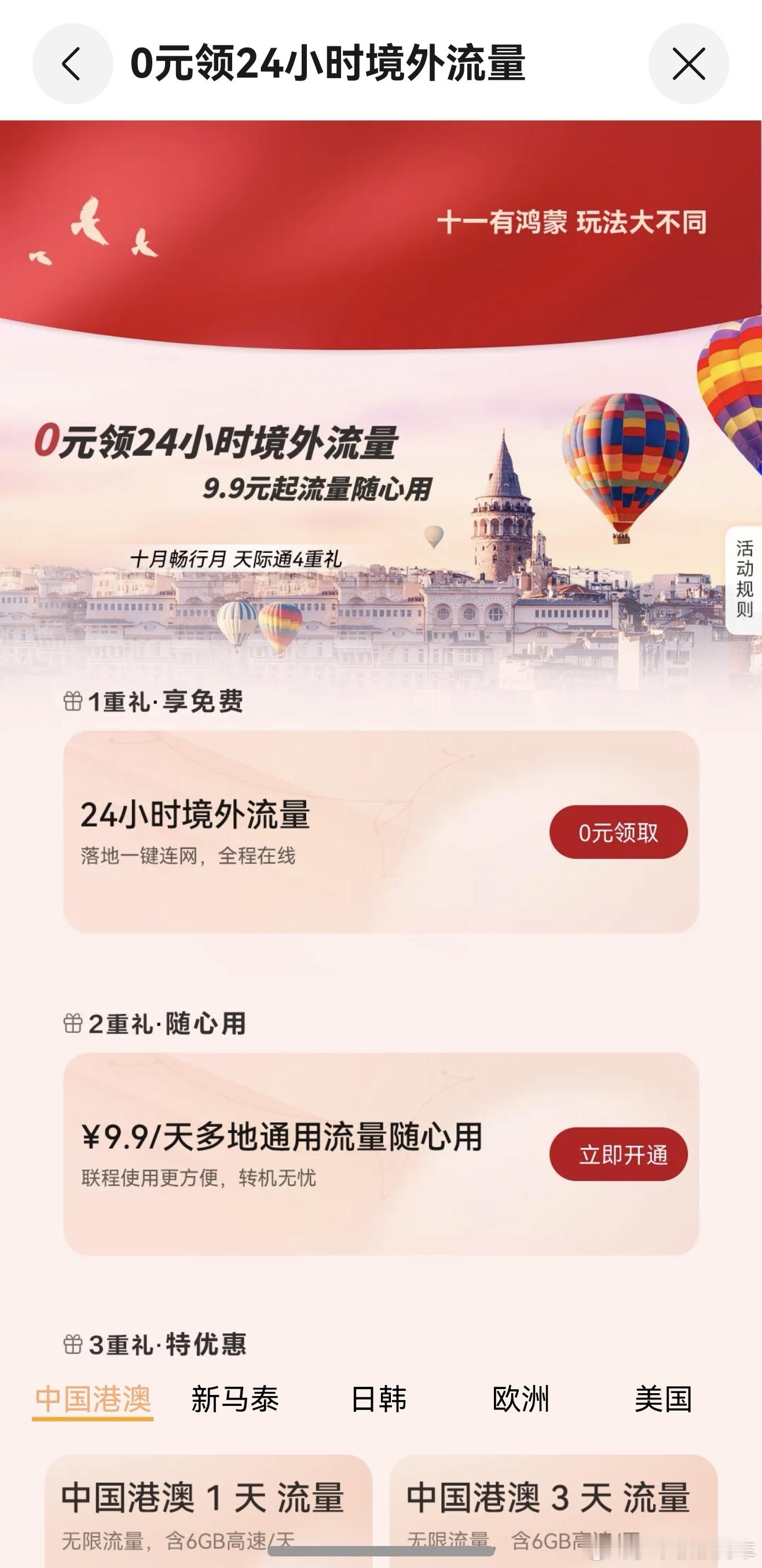 今天要去香港体验华为的天际通,也算是准eSIM的超级体验。华为给提供了三个免费的流量体验包,包括两个一天流量包和一个七天流量包,我本身也有香港中国电信的粤港澳三地卡,这次在流量上可以无限量管够,也可以无缝连接,不断网,在香港会不会有5GA信号?华为免费体验天际通漫游流量包