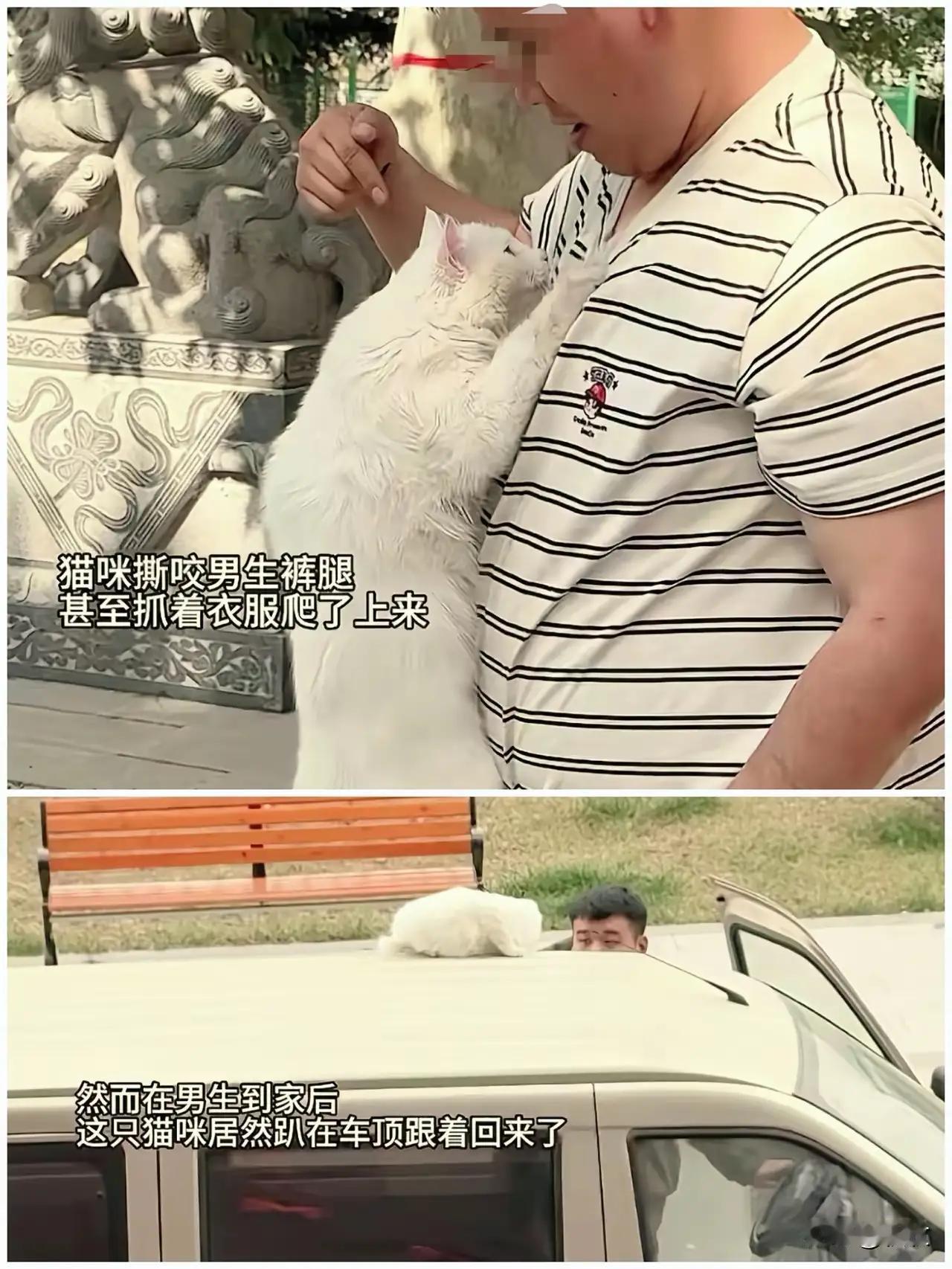 河南一男子开车回家,路上遇到一件不可思议的事。 他的妻子问:“你车顶上那只猫从哪来的?” 男子说:“早上去寺庙送菜的时候,那只白猫一直在我身上蹭,撒娇叫个不停, 我没办法就抱回来了。” 妻子说:“那你为什么要抱回家?” 男子说:“抱回家它又缠着我,我就把它丢在地上,没想到它竟然跟着我跑了好远,我也没想到它竟然跟着我跑回来了。” 妻子说:“那你送菜的时候它就在你身边了?” 男子说:“不是,它是看到我上车就跟着跑过来的。” 妻子说:“真是不可思议!” 你相信吗? 这只猫竟然跟着男子跑了好远,跑回家了,真是不可思议!