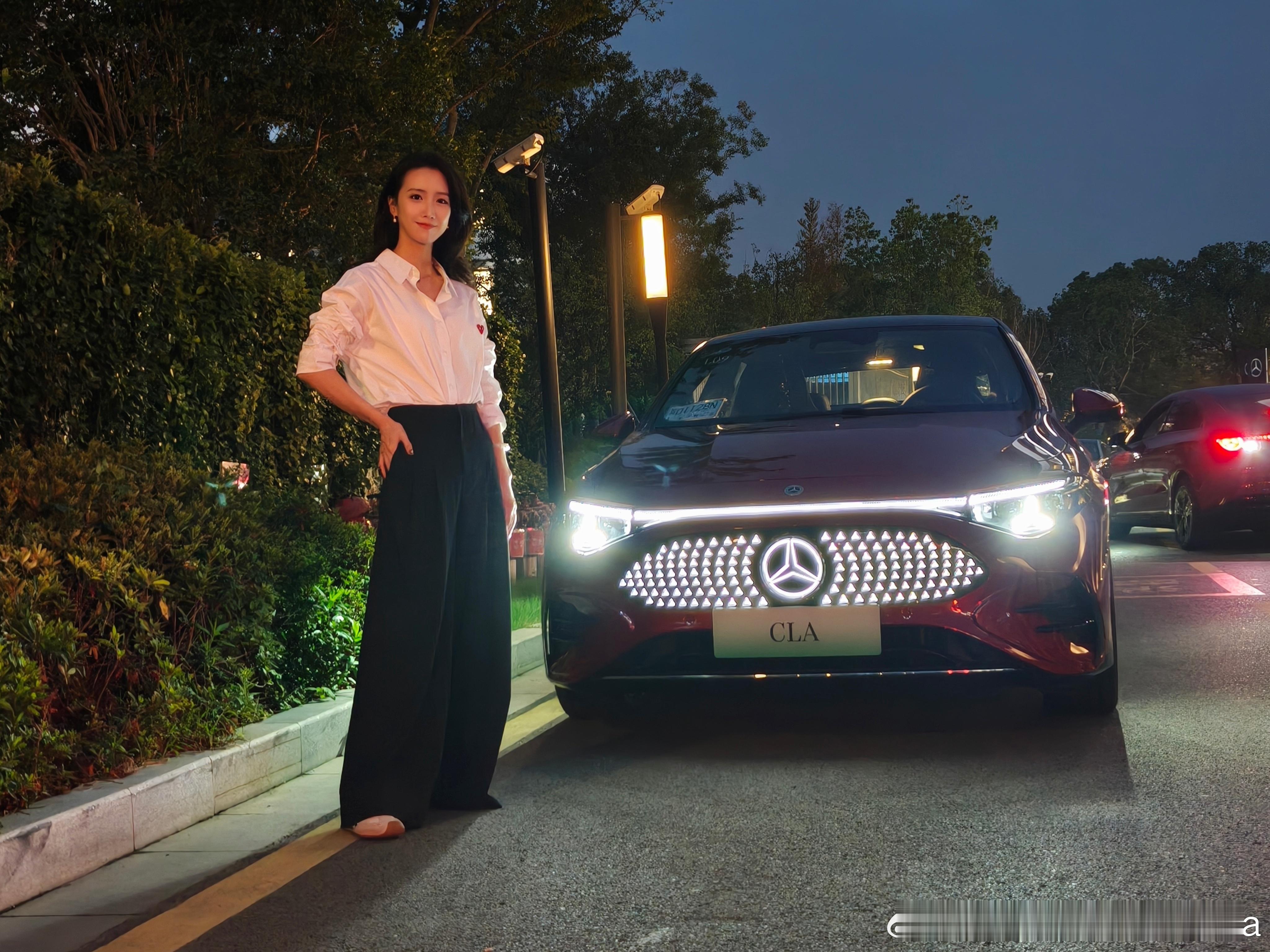 来照片了,朋友们[嘻嘻]CLA我觉得晚上更迷人,而且实车会比照片好看,所以还是得到店看车[哈哈]全新奔驰纯电cla